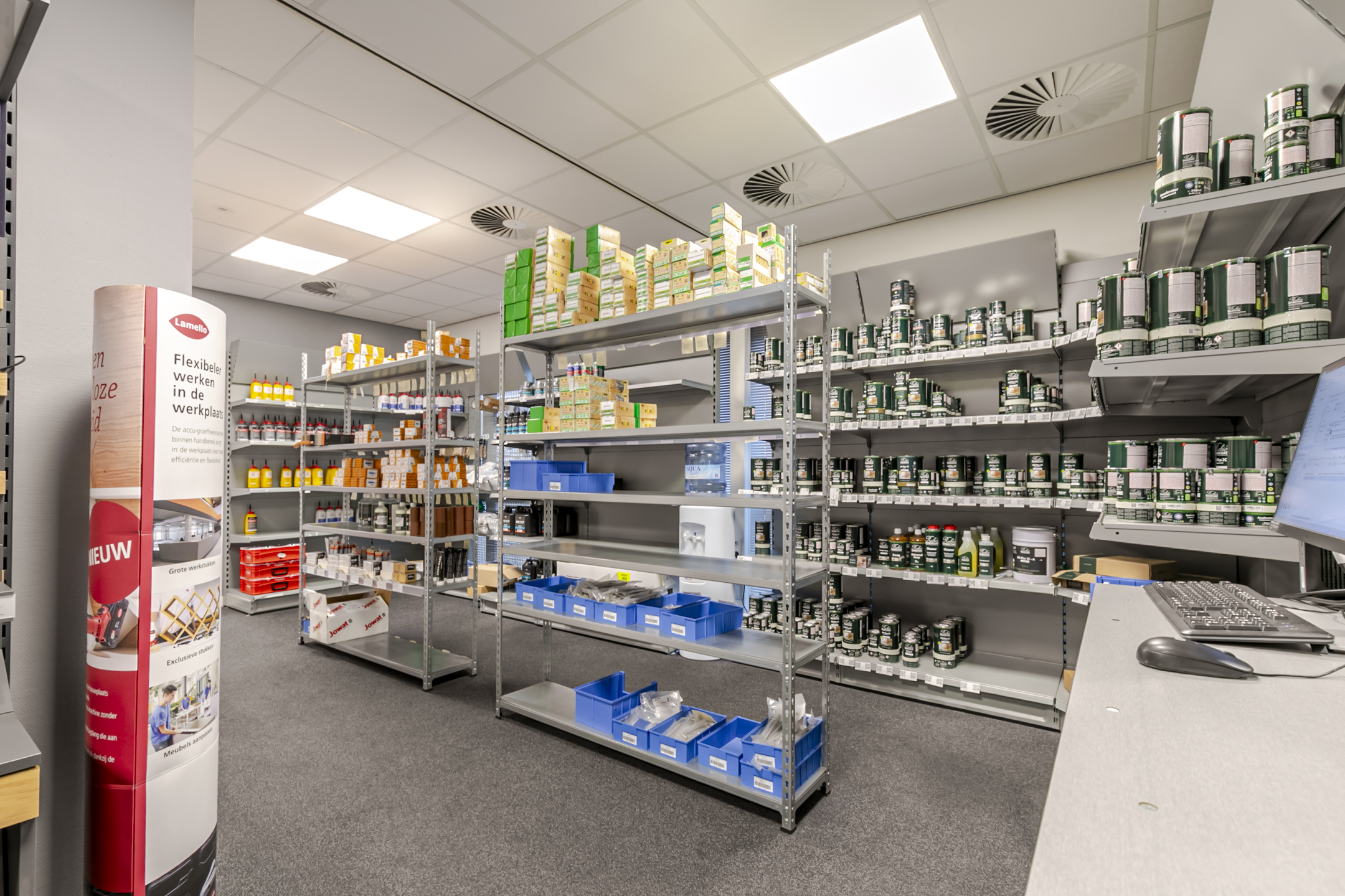 - ca. 100 m² v.v.o. showroom-/kantoorruimte op de eerste verdieping.