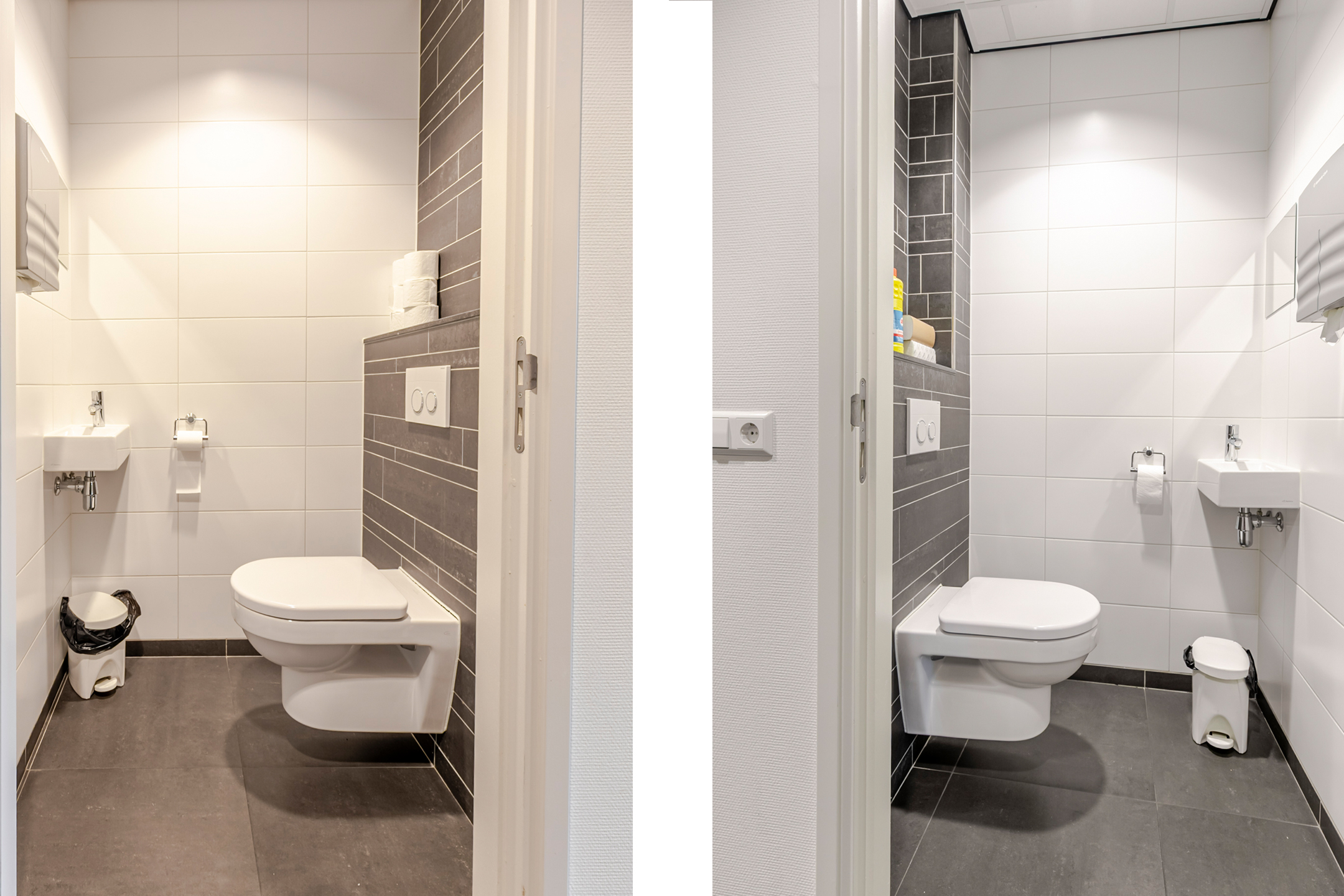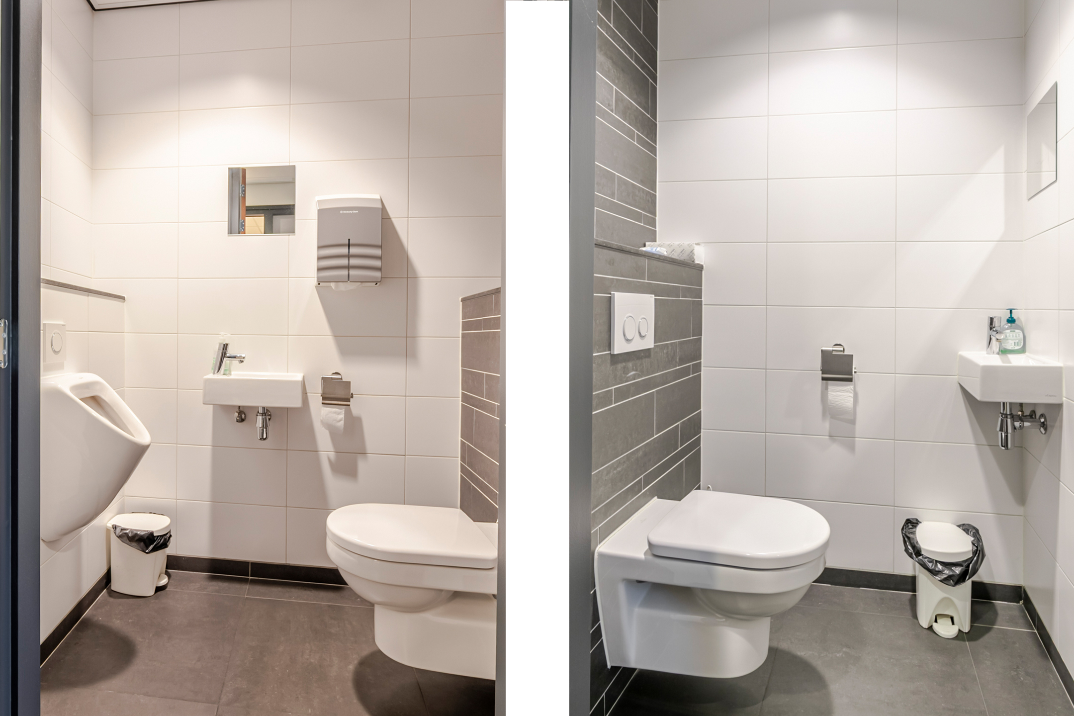 - moderne, geheel betegelde dames- en herentoiletten, beide voorzien van fontein, gesitueerd op de begane grond en de eerste verdieping