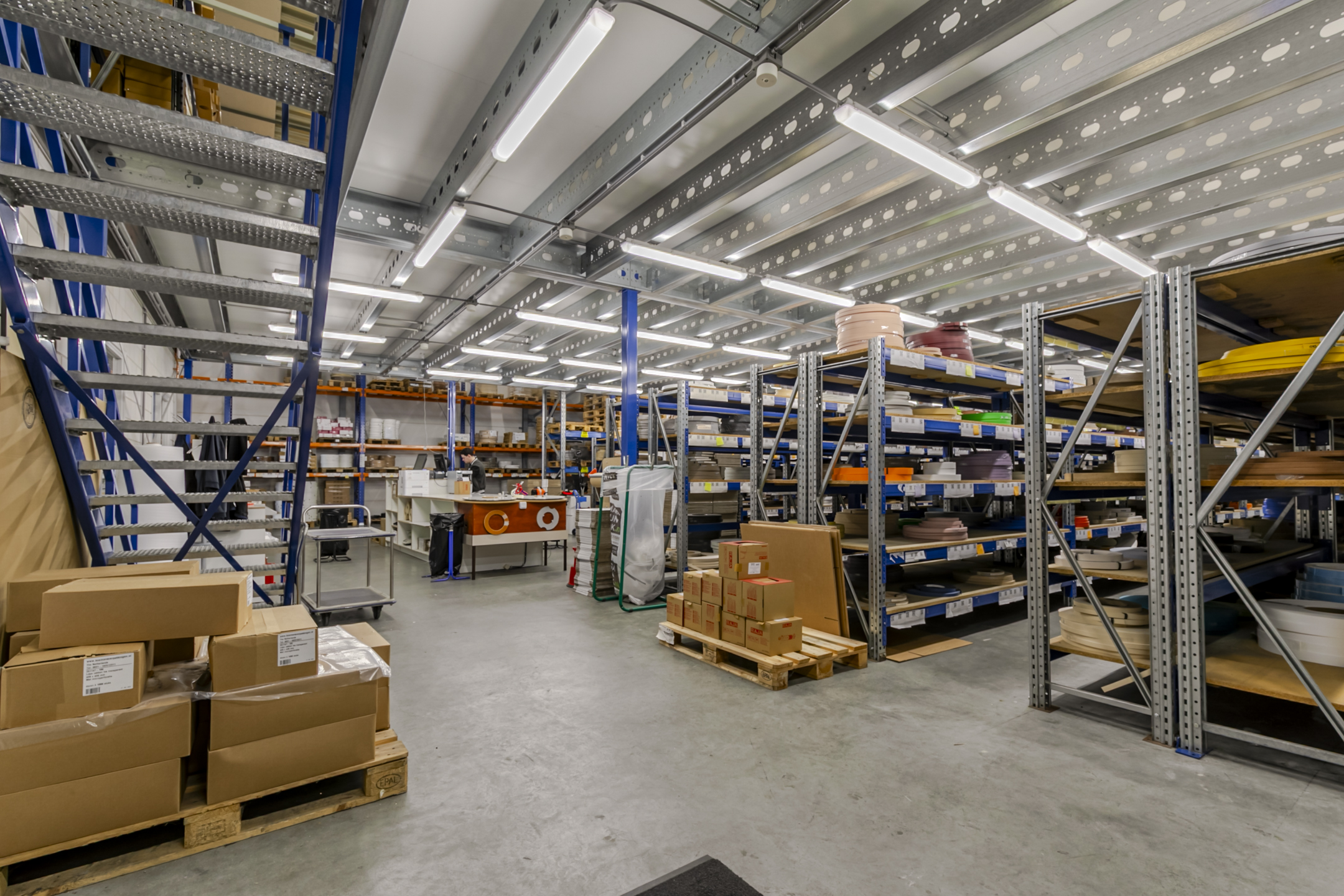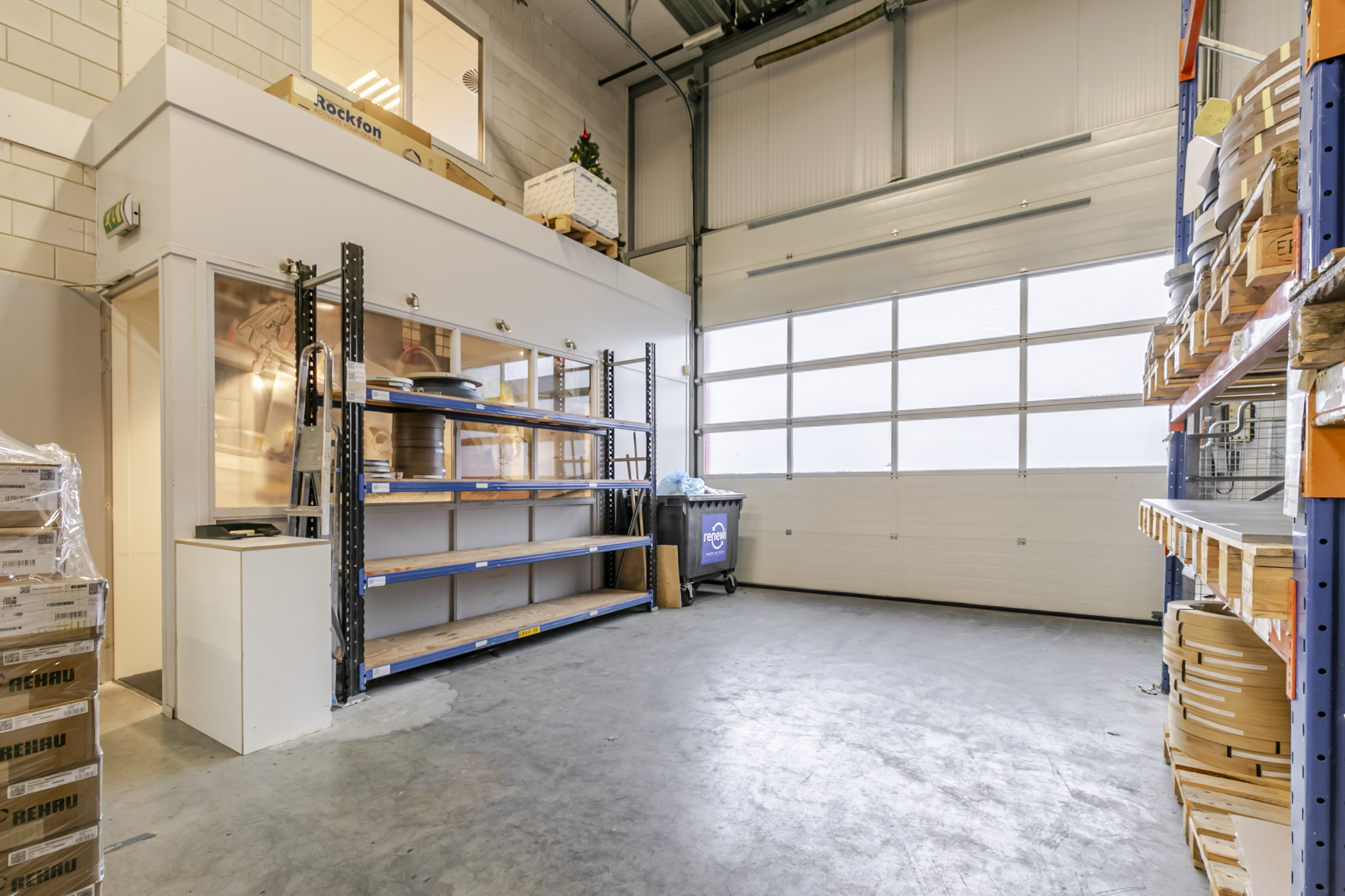 De bedrijfsruimte is voorzien van een monolithisch afgewerkte betonvloer met een vloerbelasting van circa 2.000 kg/m², een vrije hoogte van circa 6,0 meter onder spant en circa 6,6 meter onder dak, alsmede een elektrisch bedienbare overheaddeur met ruitsecties. Hierdoor is de ruimte uitstekend geschikt voor opslag, productie en logistieke doeleinden. Laden en lossen kan eenvoudig op eigen voorgelegen terrein plaatsvinden.