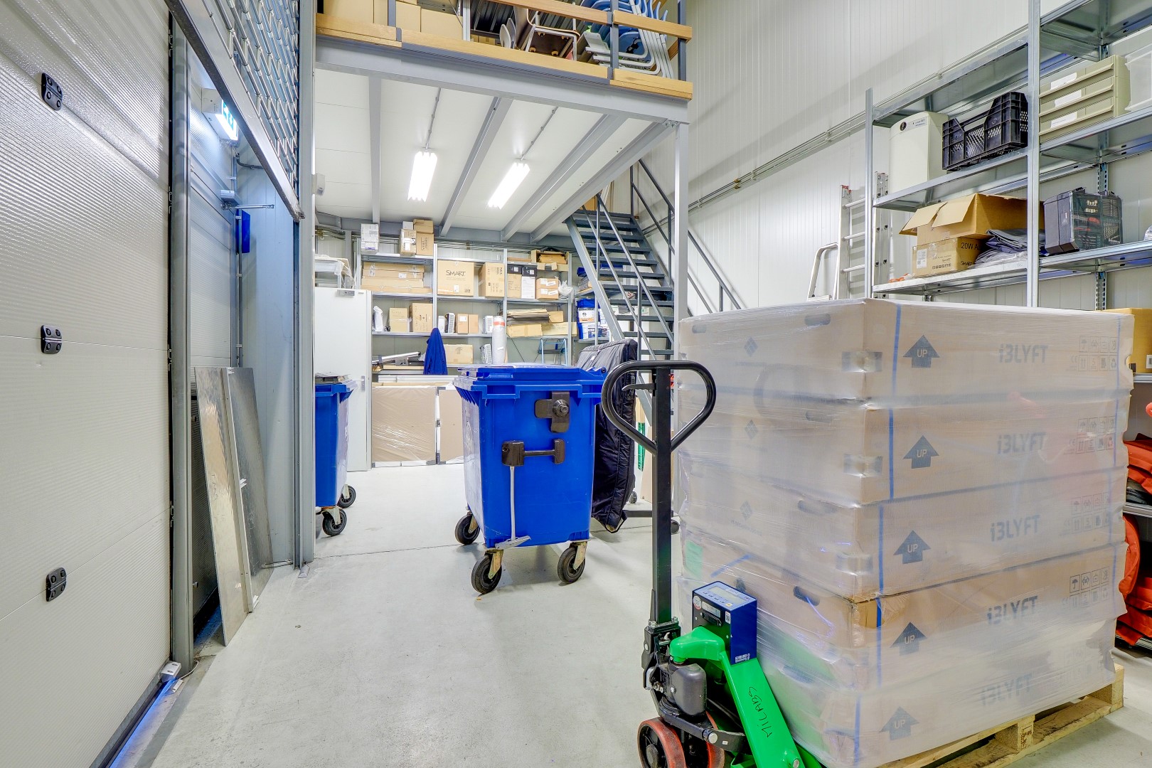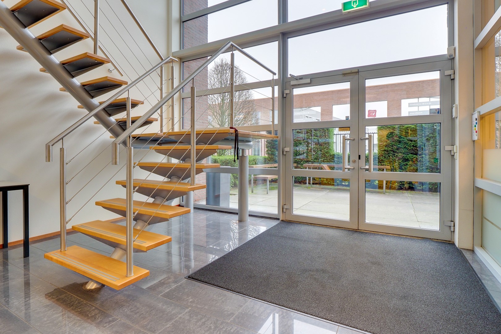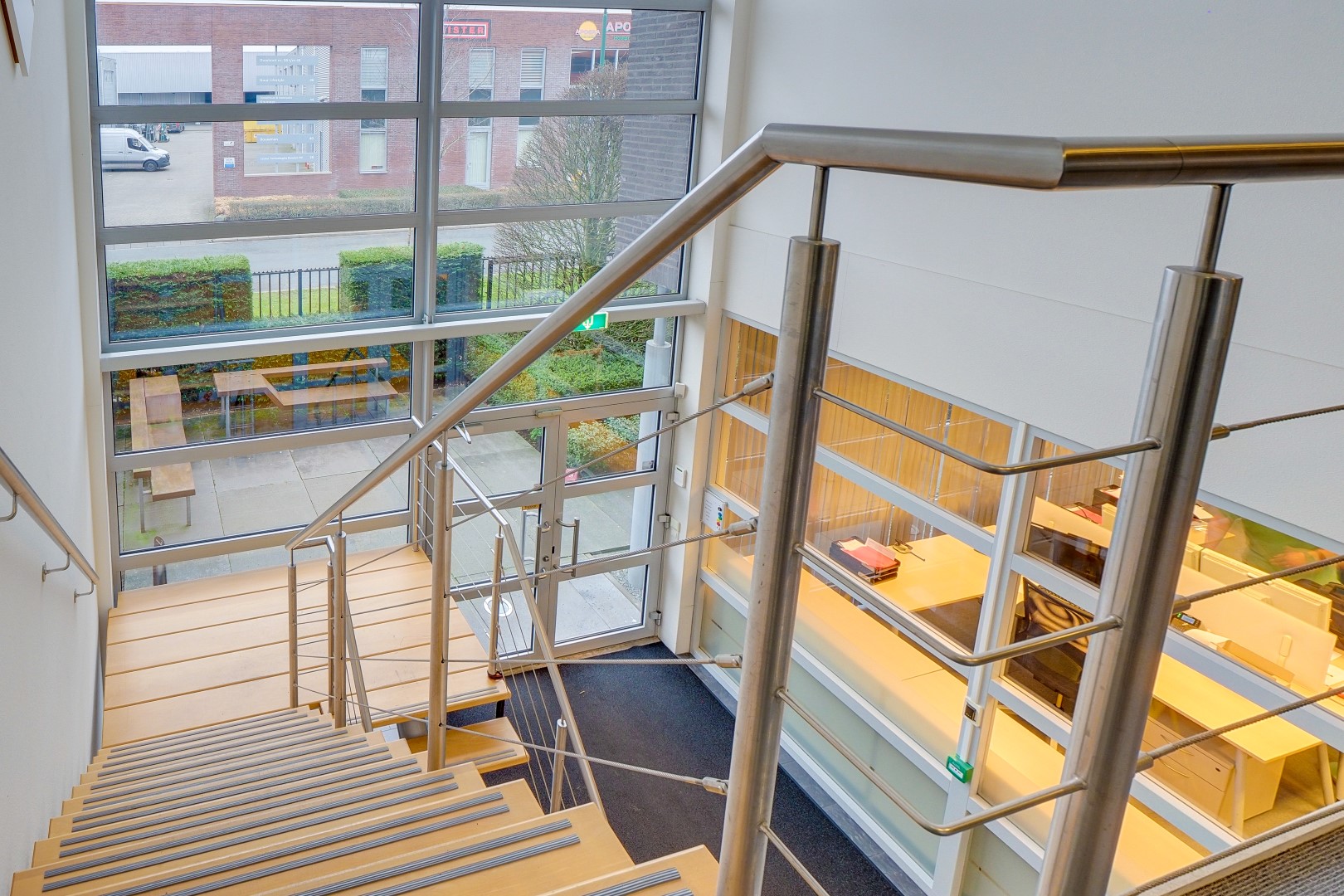 De representatieve entree geeft toegang tot de ruime ontvangsthal met directe toegang naar de bedrijfshal/showroom en kantoren. De bedrijfshal/showroom is voorzien van gecoate vloer, 2 overheaddeuren en systeemplafonds. De kantoren en kantine op de begane grond en eerste verdieping zijn modern en hoogwaardig ingericht, o.a. voorzien van airconditioning en systeemplafonds met ingebouwde geluidinstallatie. Er zijn 24 parkeerplaatsen op eigen afsluitbaar terrein.