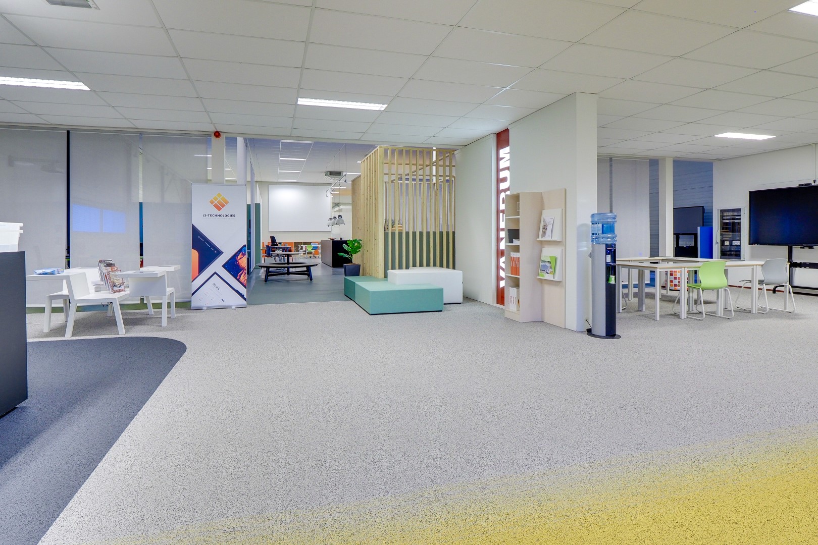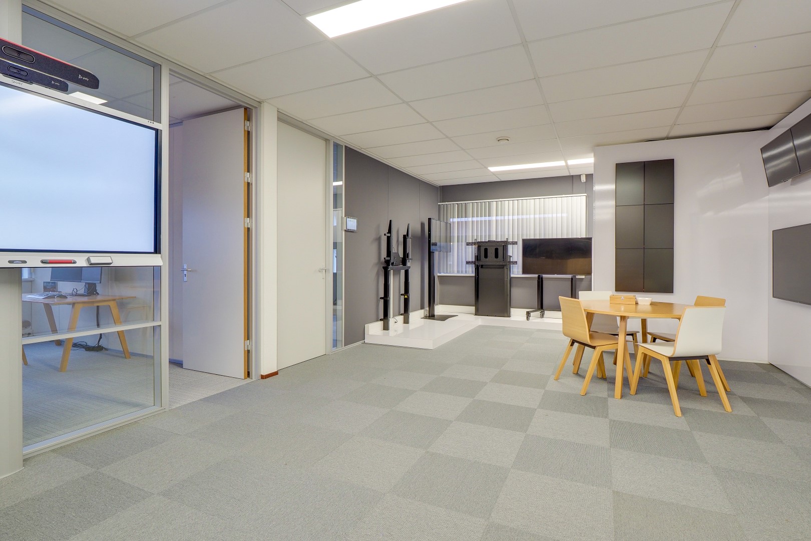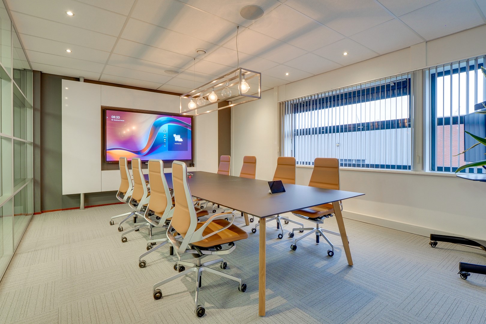 De representatieve entree geeft toegang tot de ruime ontvangsthal met directe toegang naar de bedrijfshal/showroom en kantoren. De bedrijfshal/showroom is voorzien van gecoate vloer, 2 overheaddeuren en systeemplafonds. De kantoren en kantine op de begane grond en eerste verdieping zijn modern en hoogwaardig ingericht, o.a. voorzien van airconditioning en systeemplafonds met ingebouwde geluidinstallatie. Er zijn 24 parkeerplaatsen op eigen afsluitbaar terrein.