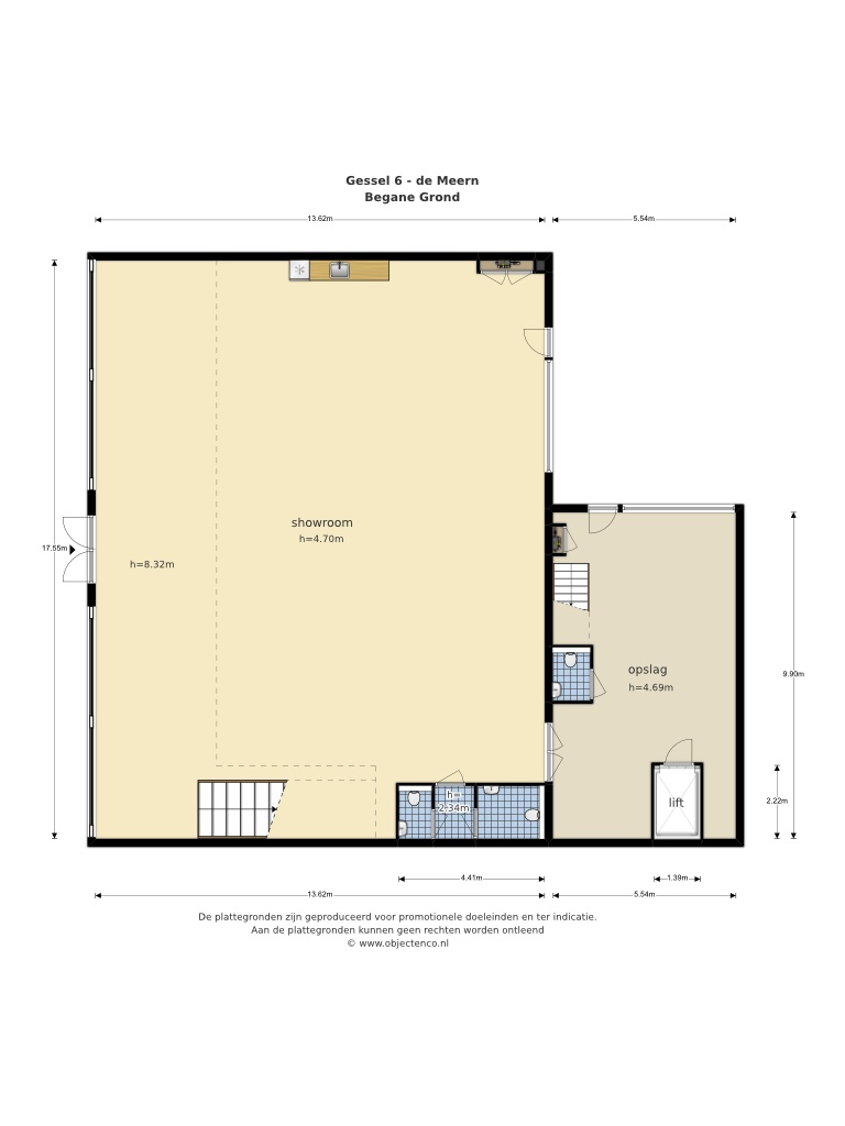 - vrije hoogte showroom ca. 4,7 tot circa 8,3 meter