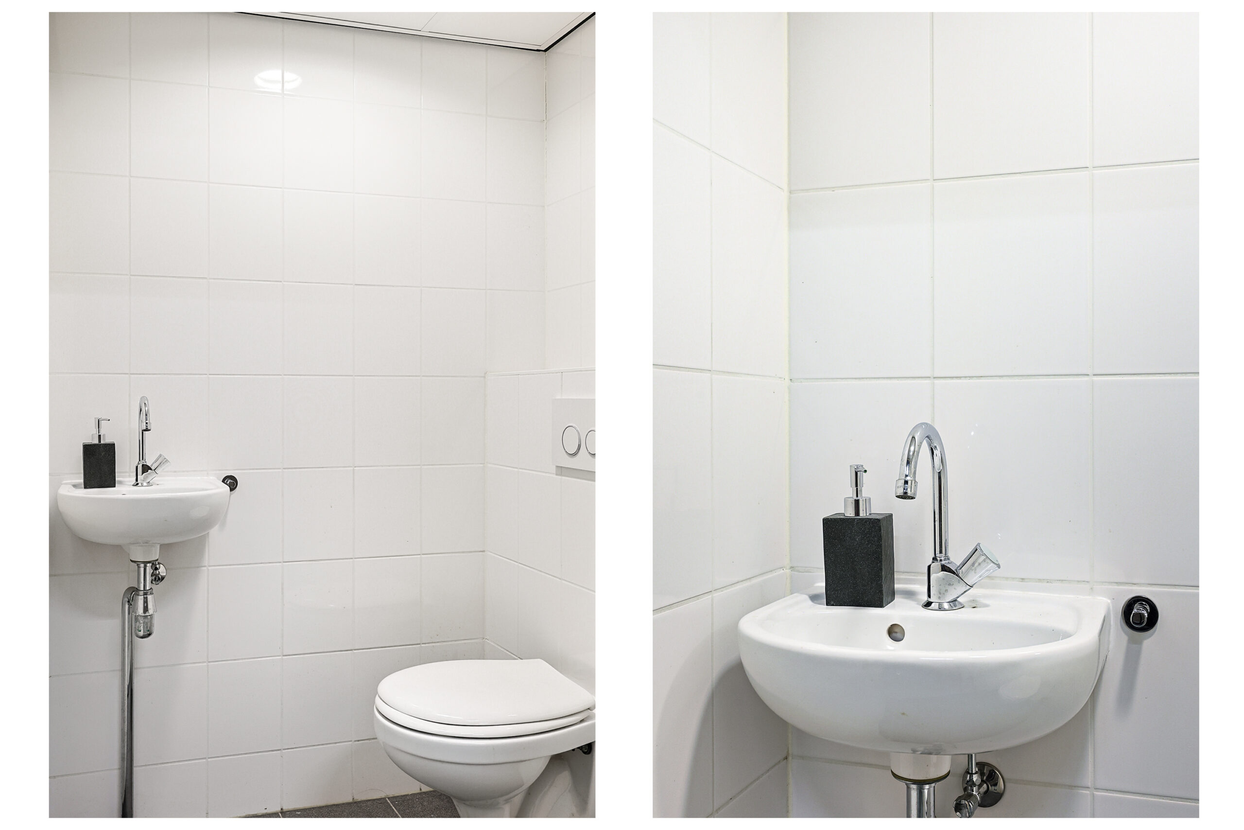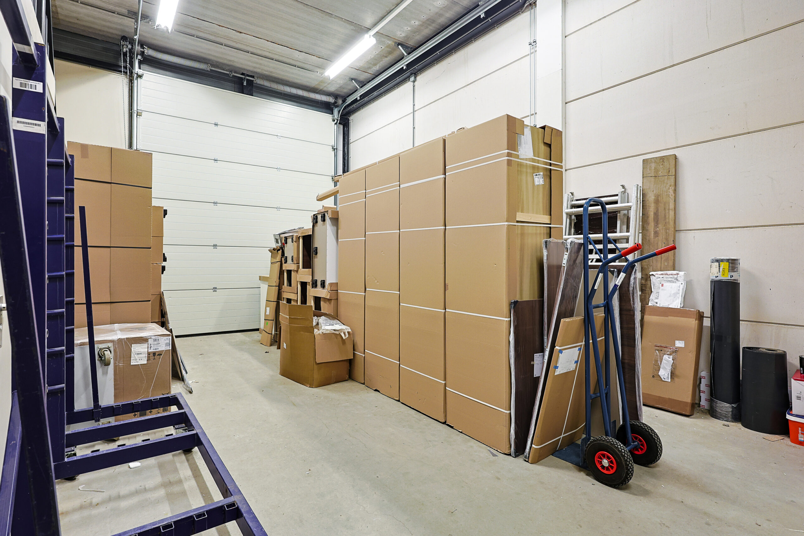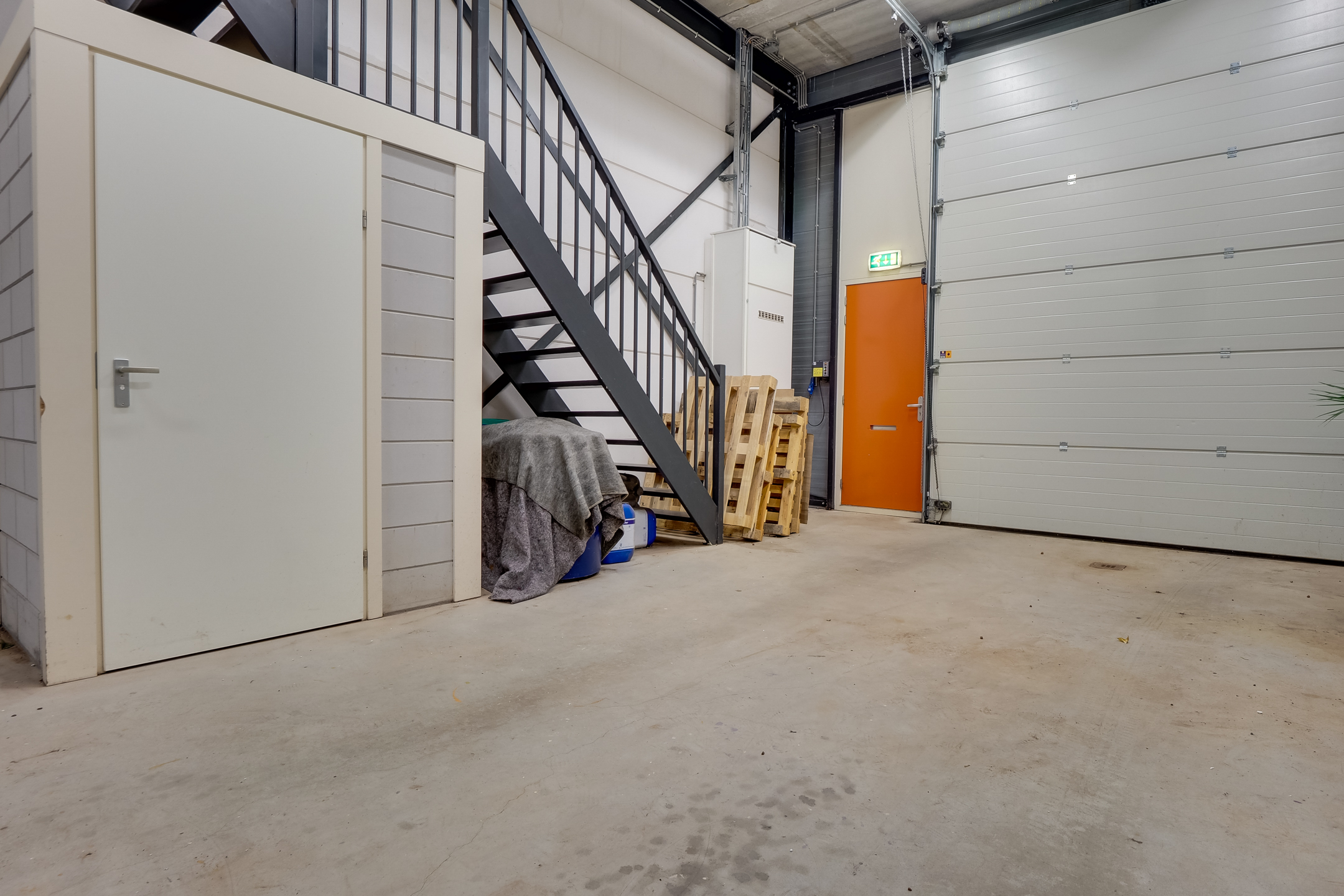 Aan de achterzijde bevindt zich een twee laags kleinere bedrijfs-/opslag unit welke intern is verbonden aan de showroom op zowel de begane grond als verdieping. Grote raampartijen van vloer tot plafond aan de voorzijde zorgen voor veel lichtval.