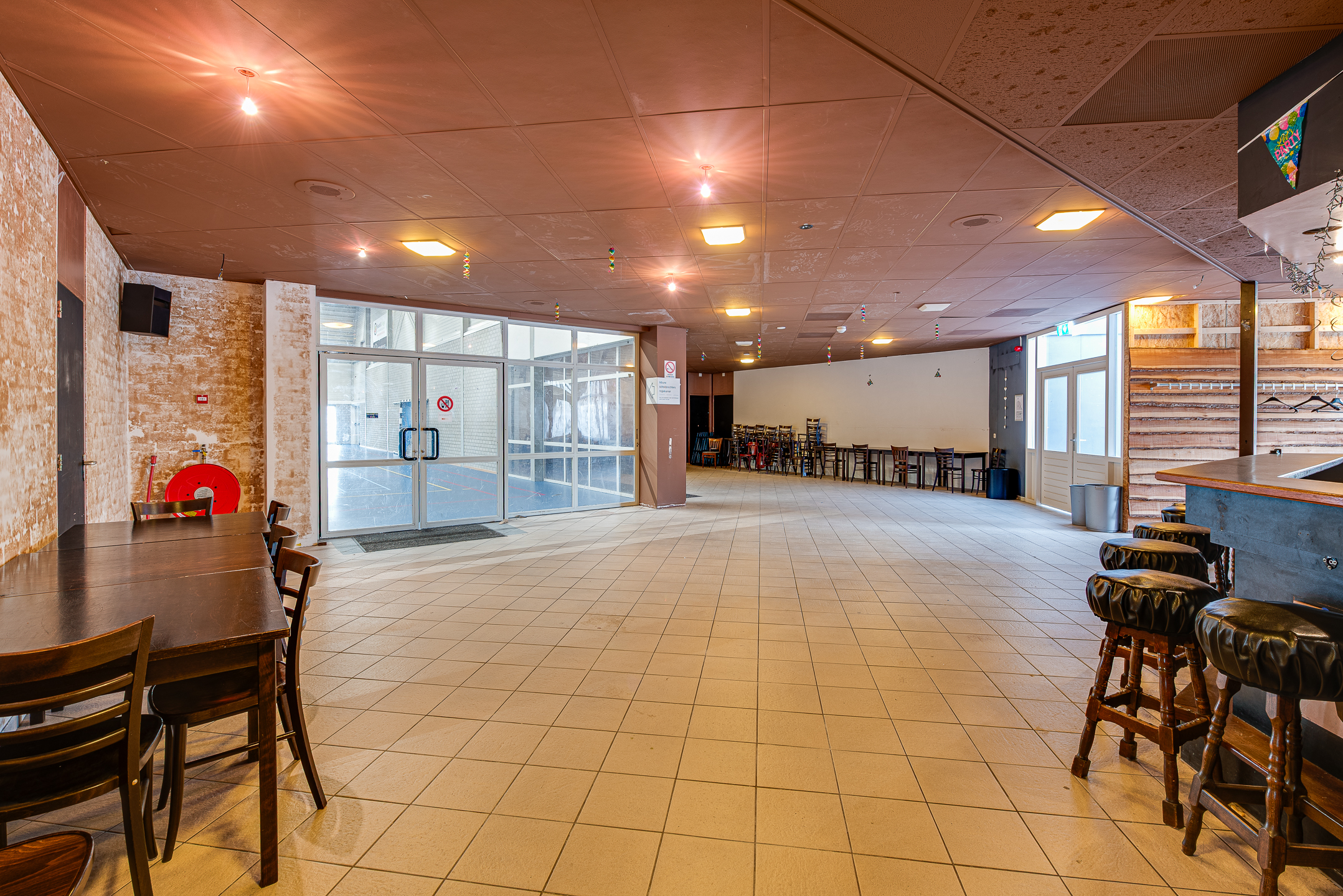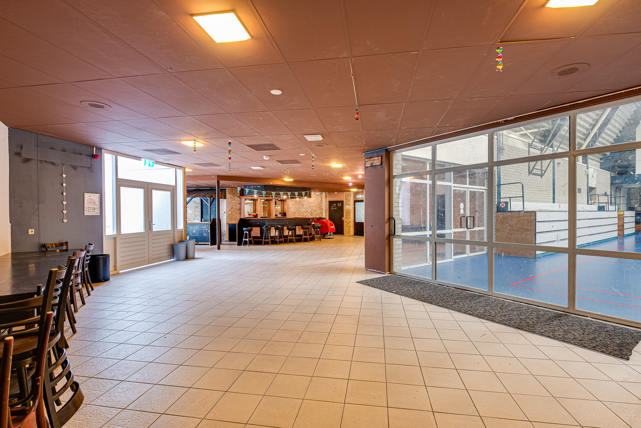 De unit beschikt over een eigen entree en diverse voorzieningen. Na binnenkomst komt u in een grote, open ruimte met zicht op de sporthal. In de ruimte bevinden zich onder meer een bar, keuken, opslagruimte en een eigen toiletvoorziening. De ruimte leent zich…