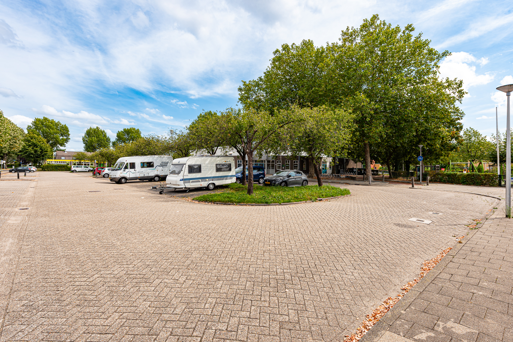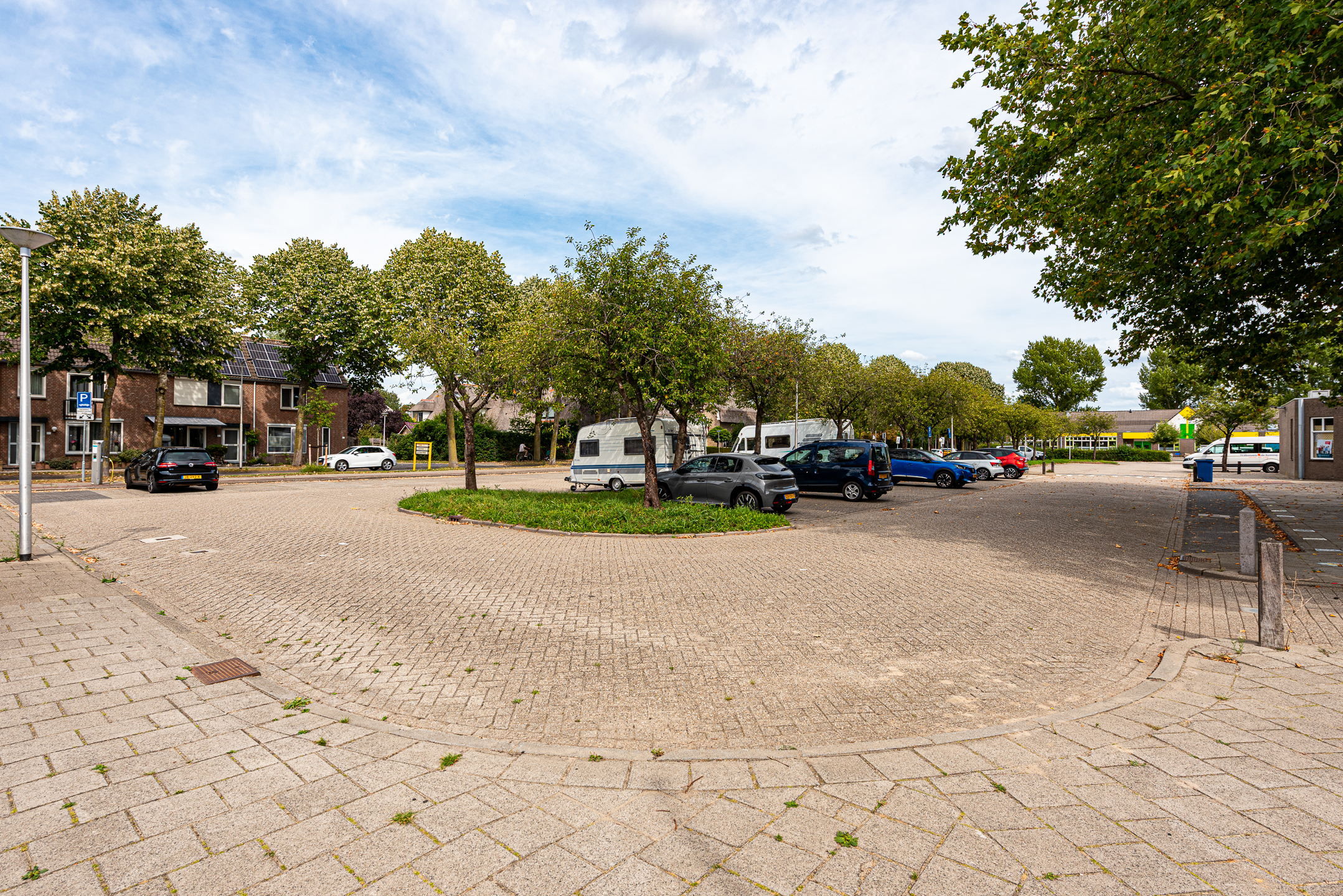 Om het gebouw is groot parkeerterrein met ruim voldoende parkeergelegenheid.