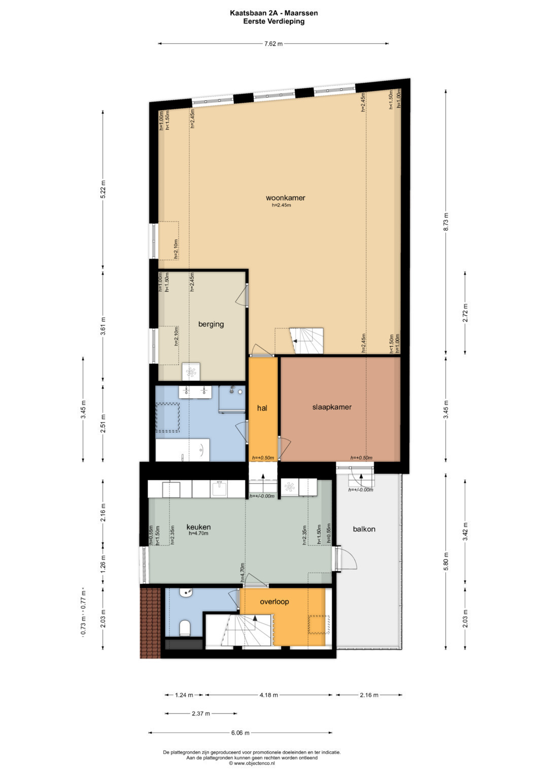 Het totale object heeft een bruto vloeroppervlak van circa 448 m² bvo,