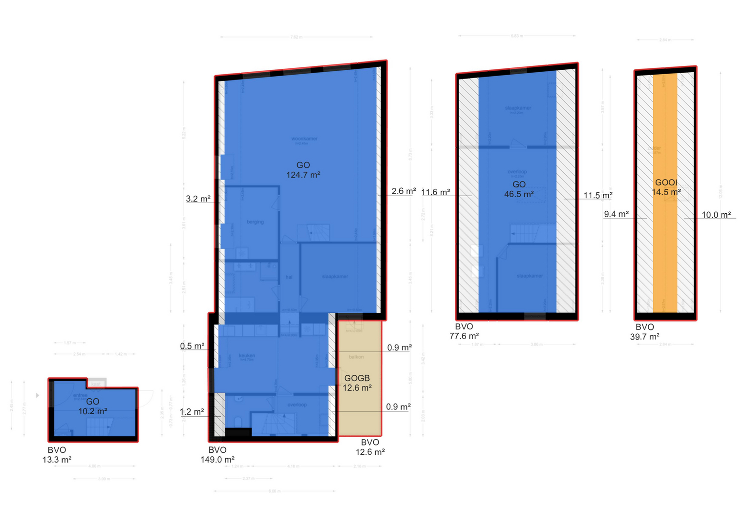 Het gebruiksoppervlak bedraagt circa 181,4 m², met circa 14,5 m² overige inpandige ruimte en circa 12,6 m² gebouwgebonden buitenruimte. Metrage conform NEN2580 meetrapport