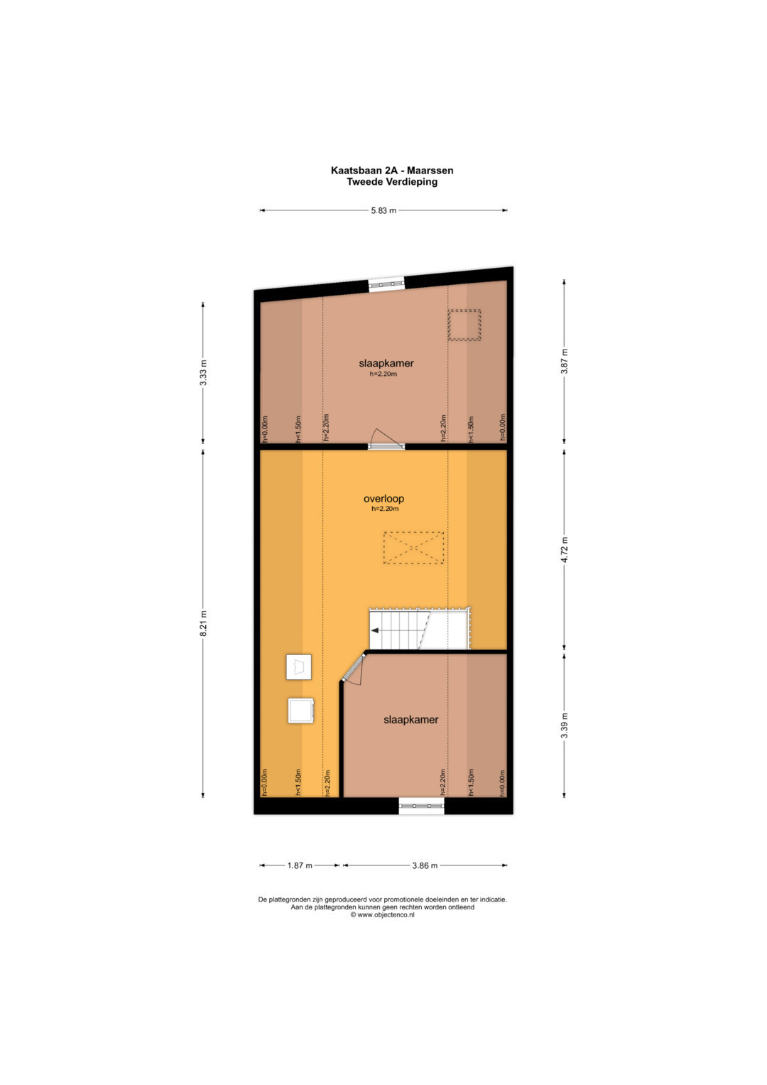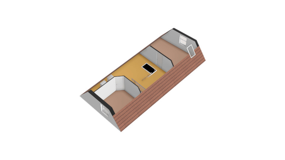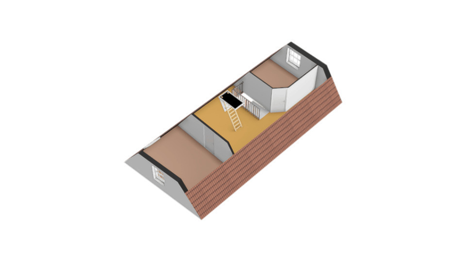 2e verdieping: 2 slaapkamers met een grote overloop/hobbyruimte