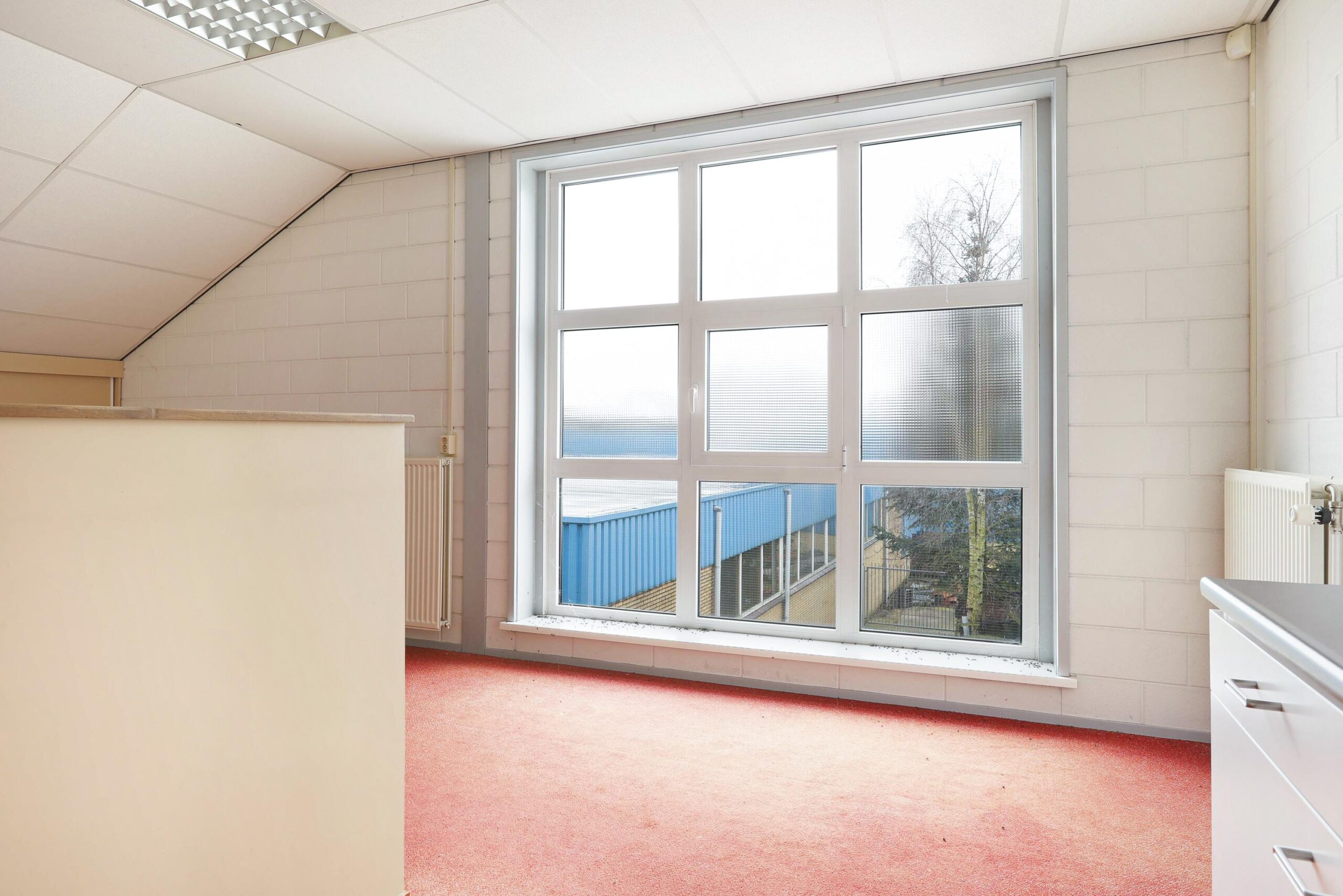 Moderne bedrijfsunit van circa 508 m² met bedrijfs-/opslagruimte, kantoorruimte, 12 parkeerplaatsen en ca. 233 m² verhard parkeer-/buitenterrein, gelegen op de hoek van een rij geschakelde bedrijfspanden.
