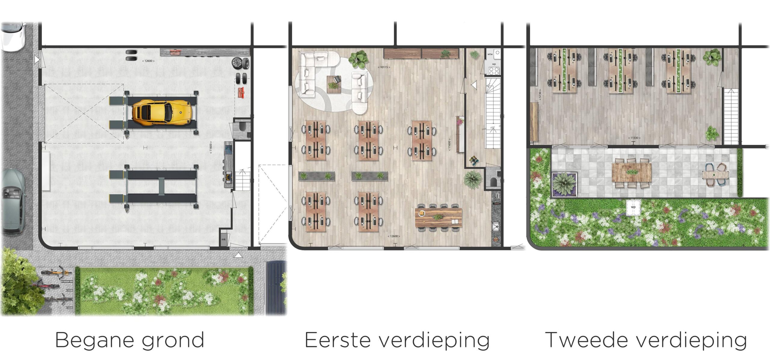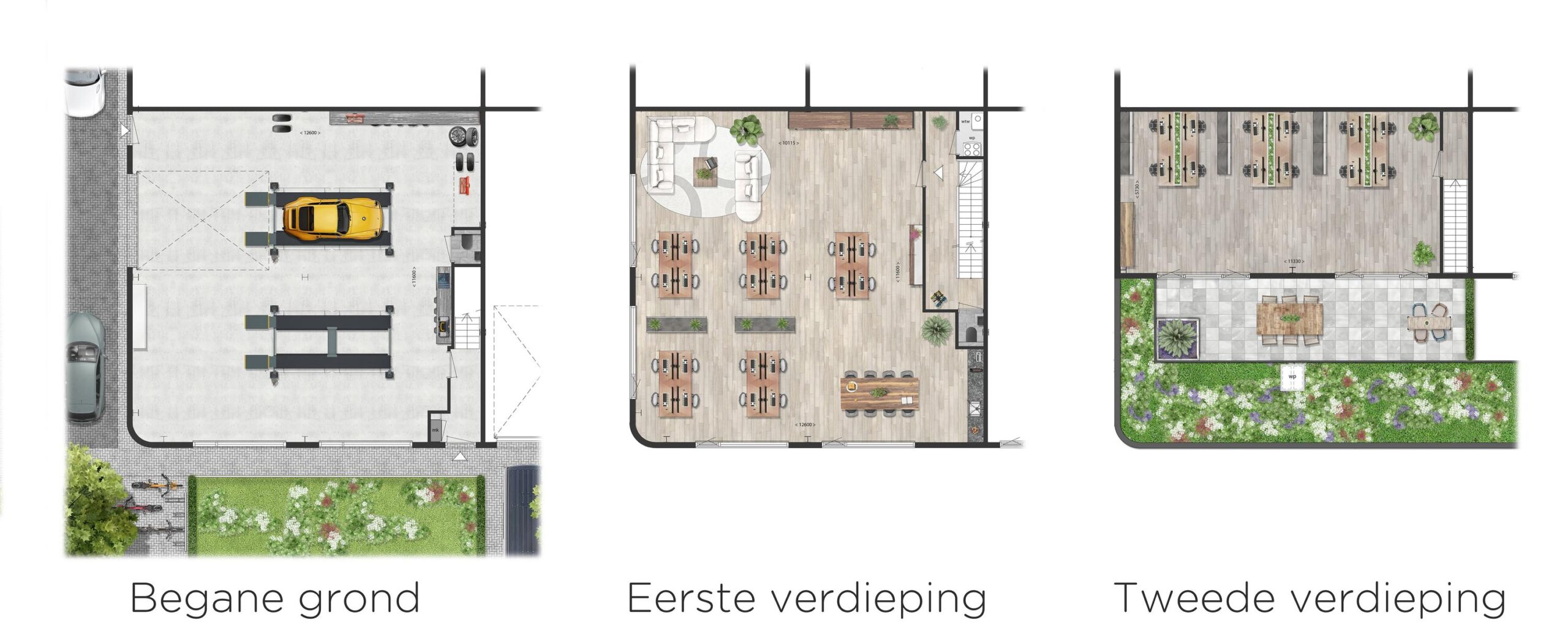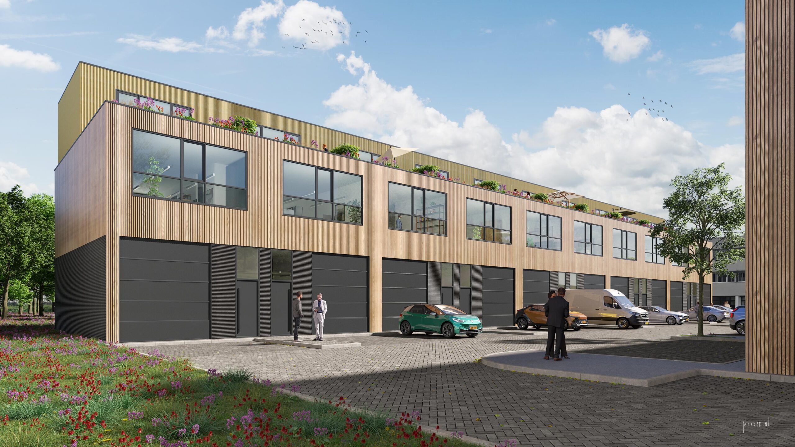 De 21 bedrijfsgebouwen worden casco opgeleverd, doch voorzien van: