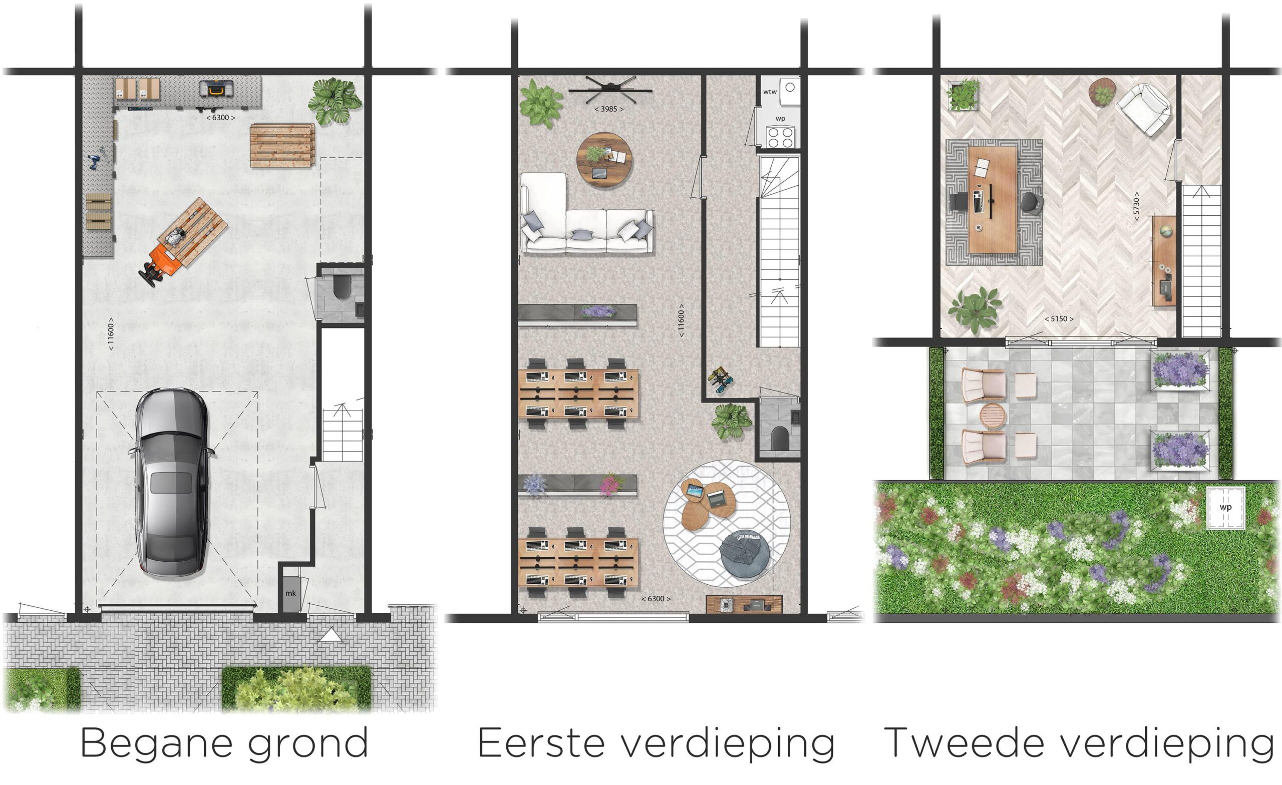 • Betonvloer BG is geïsoleerd (Rc 3,7) en glad afgewerkt (vloerbelasting circa 1.000 kg/m²);