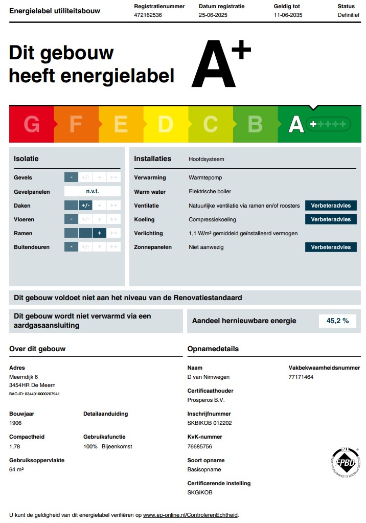 De winkelruimte heeft energielabel A+, geldig tot 11-06-2035.