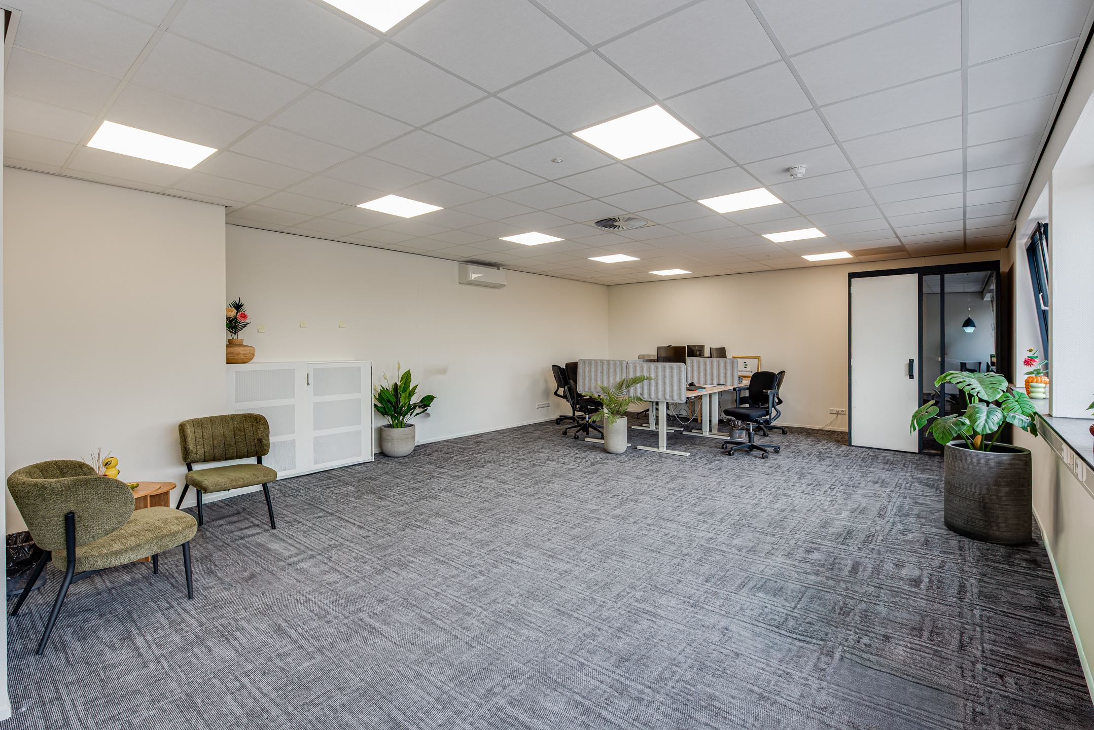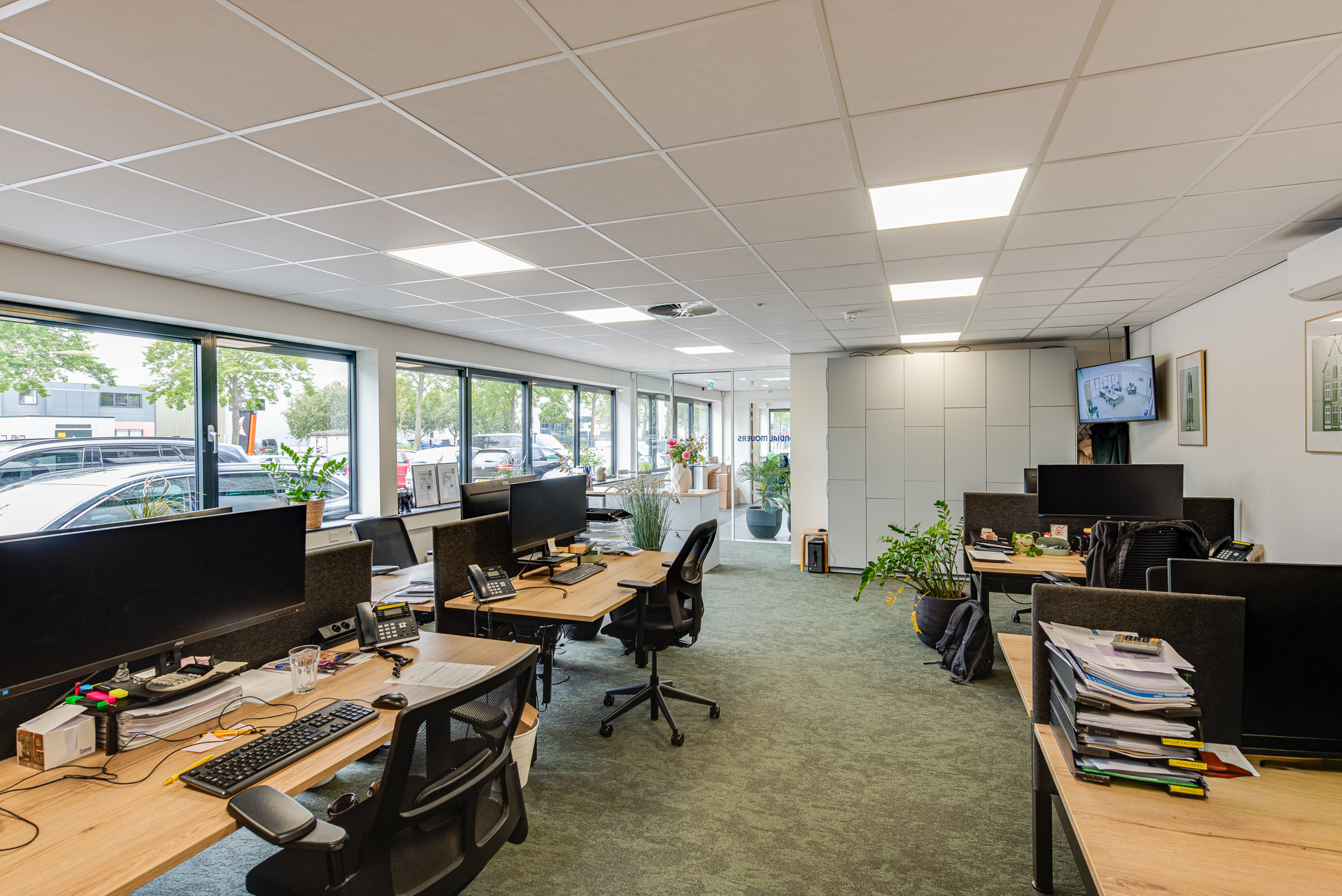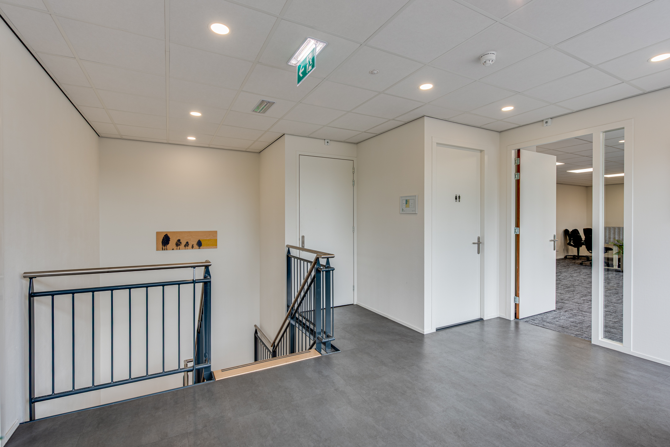 Een representatief tweelaags kantoor aan de voorzijde, met daarachter een ruime bedrijfshal met een vrije hoogte van circa 8,76 meter en een hoge vloerbelasting van circa 3.500 kg/m². De hal is voorzien van 2 elektrische overheaddeuren (1 aan de voorzijde en 1 aan de achterzijde welke uitzonderlijk breed is: circa 8 meter), ideaal voor efficiënt laden en lossen.