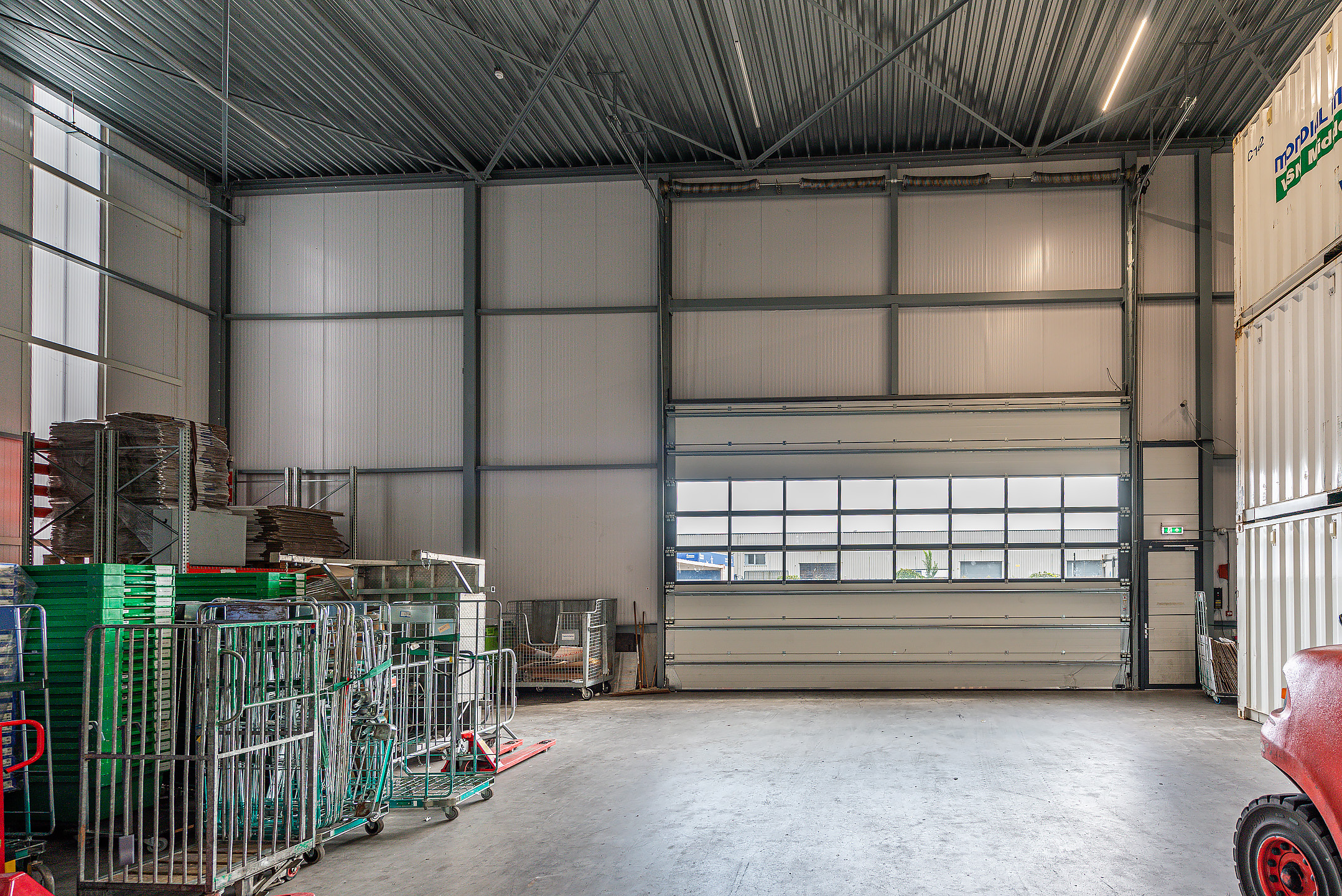 - 2 elektrische overheaddeuren waarvan 1 extra breed (8m b x 4,2m h, en 4m b x 4,2m h)