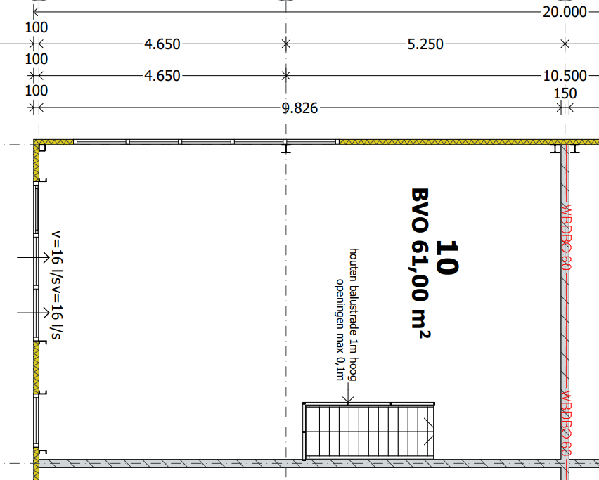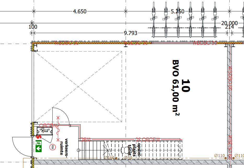 - vrije hoogte van ca. 475 cm onder de verdiepingsvloer