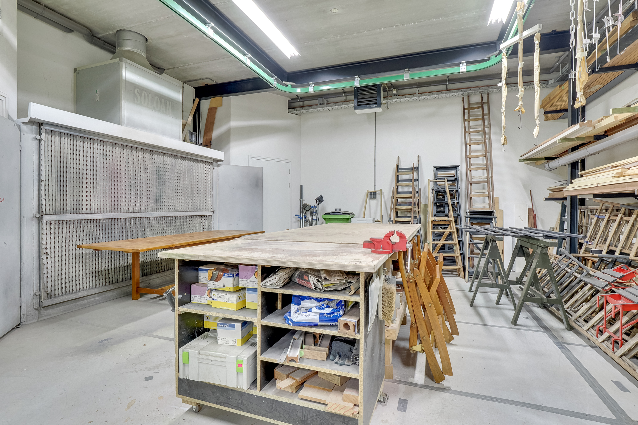 - Soloan afzuigwand en monorail aan plafonds t.b.v. spuiterij