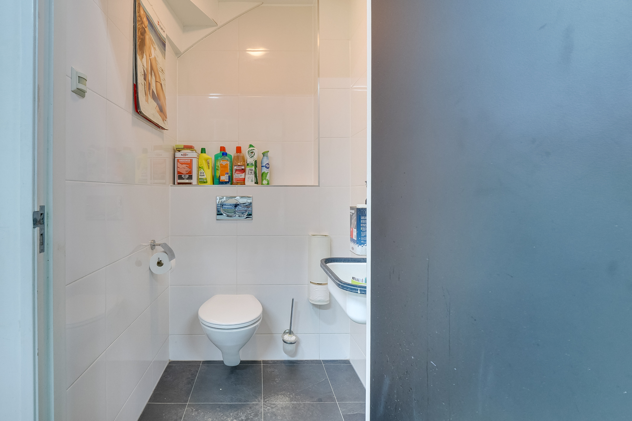 - toiletruimte met uitstortgootsteen, ventilatie en bewegingssensor t.b.v. verlichting