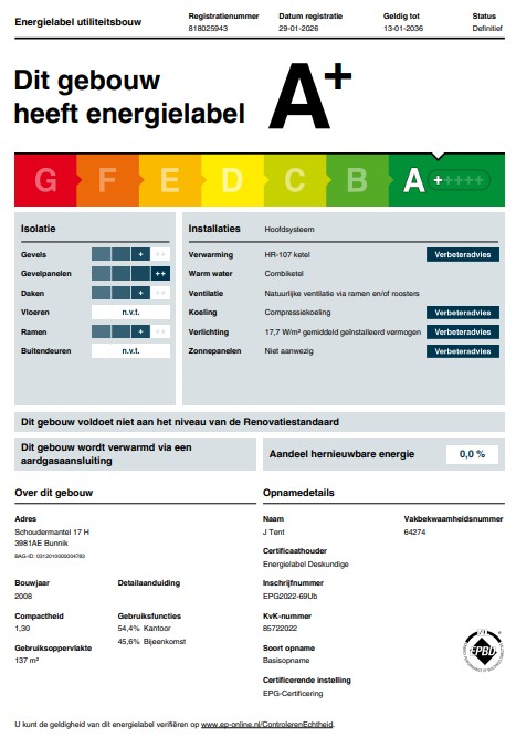 Betreft label A+, geldig tot 13-01-2036.