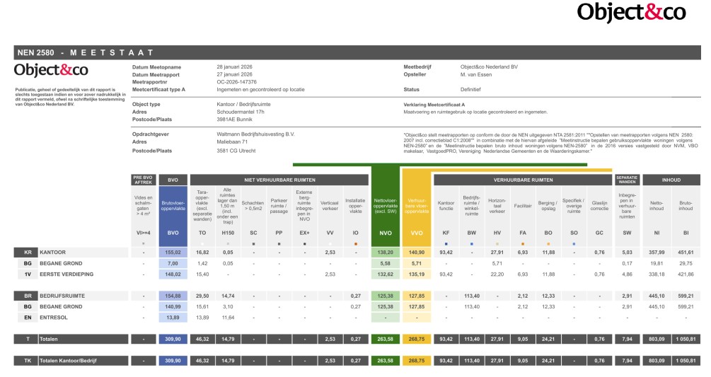 Metrage conform NEN2580 meetcertificaat.