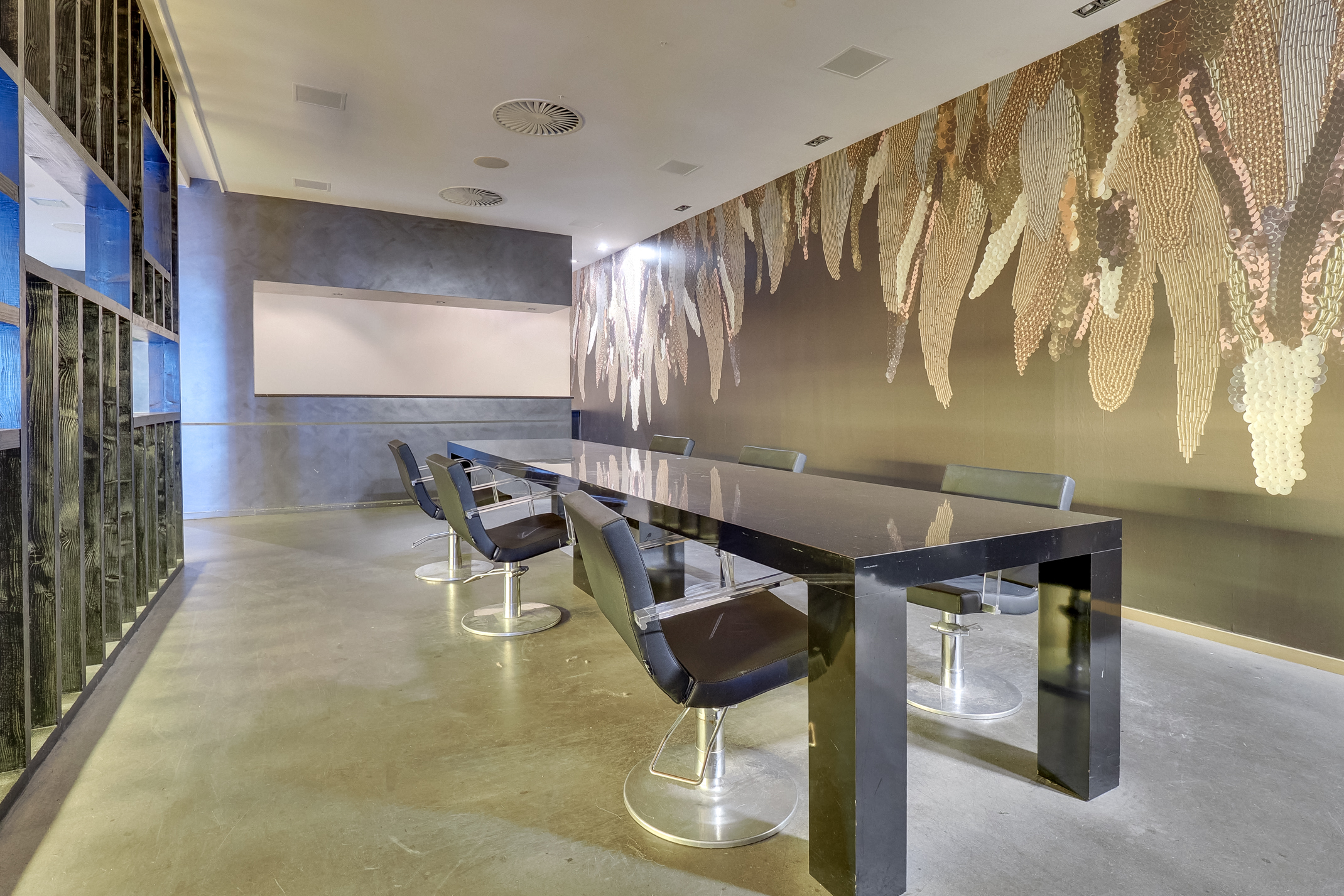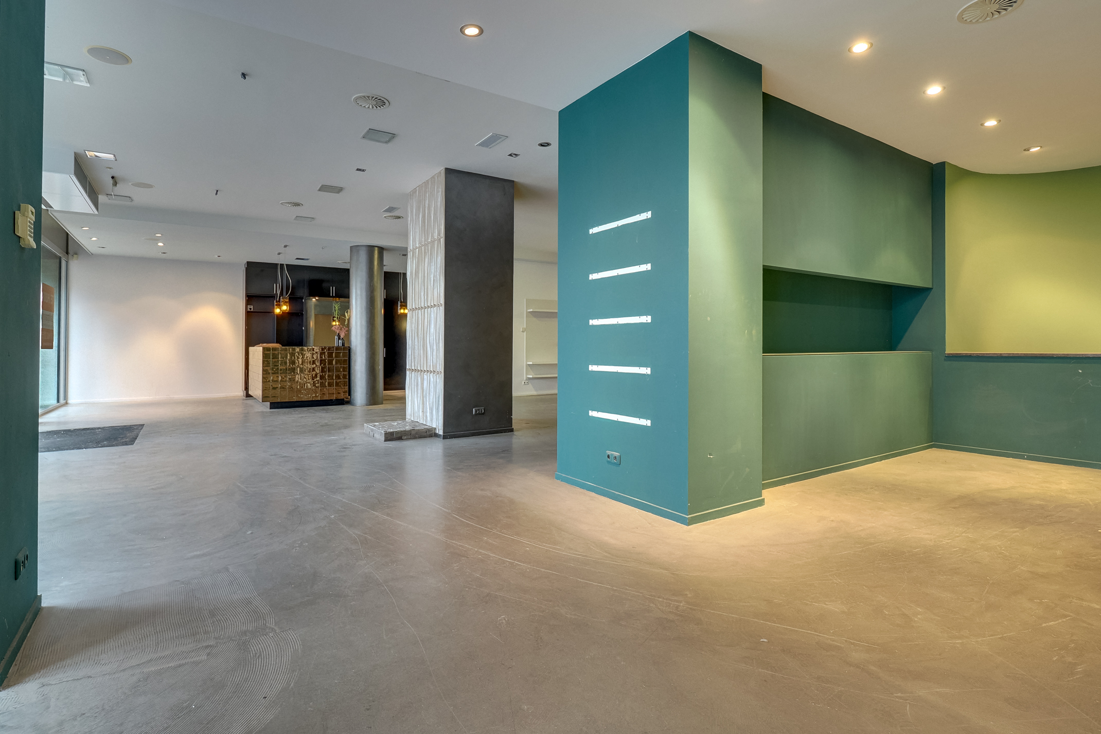 De winkelruimte is gesitueerd op de begane grond en in de kelder van het karakteristieke Allegra-gebouw. Op de bovengelegen verdiepingen bevinden zich luxe appartementen, wat bijdraagt aan de levendigheid en kwaliteit van de locatie. De architectuur van het gebouw onderstreept de allure van de Slotlaan. De gevel wordt gekenmerkt door “Parijse” raamopeningen, geplaatst in grote kaders van geëtst, zandkleurig prefab beton. Deze vormgeving benadrukt de voornaamheid van het pand.
