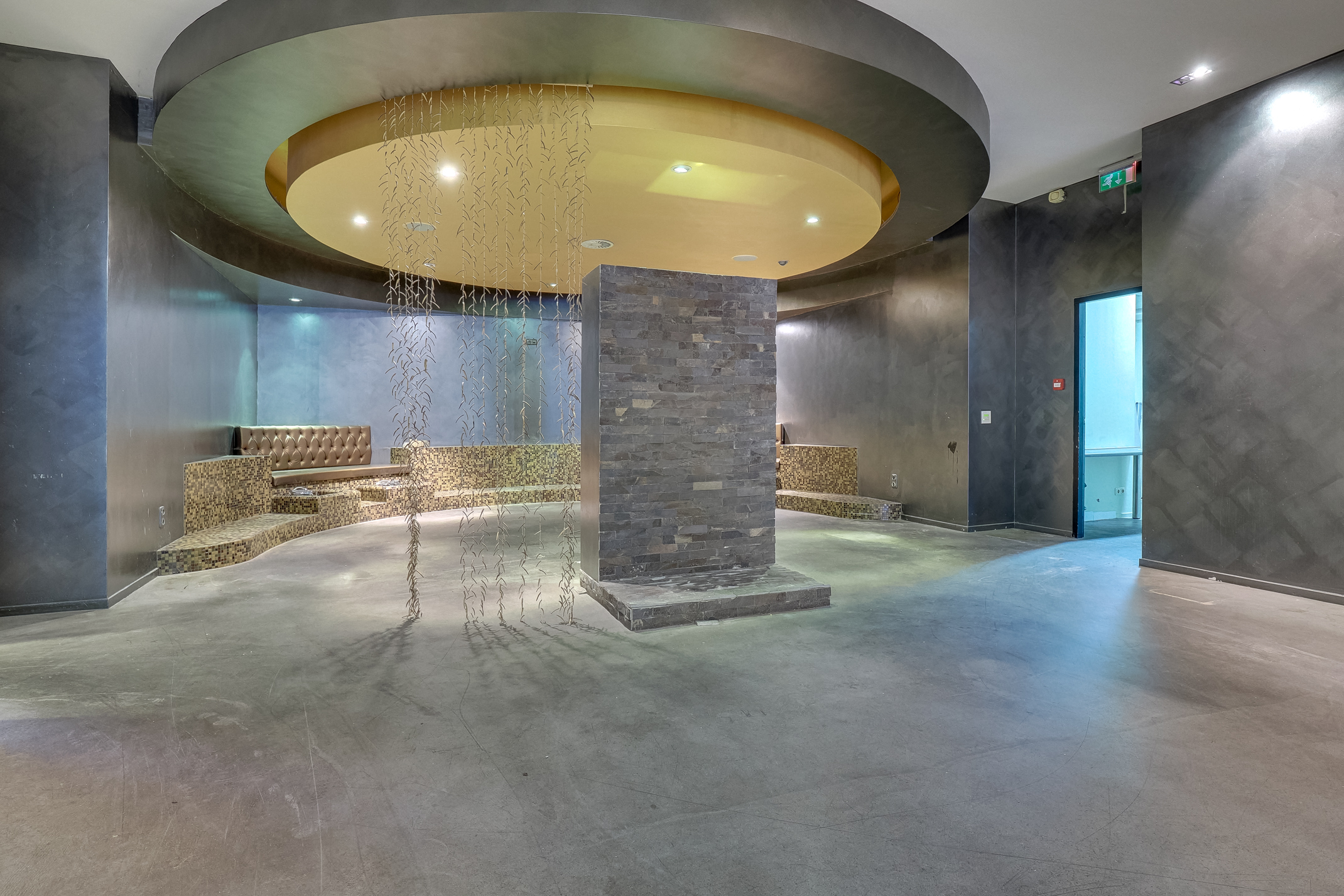 De kelder, met een originele stahoogte van circa 3 meter, heeft een spa-indeling met vier behandelkamers met wastafel/douches, een receptie, een rest & relax-ruimte en een toilet.