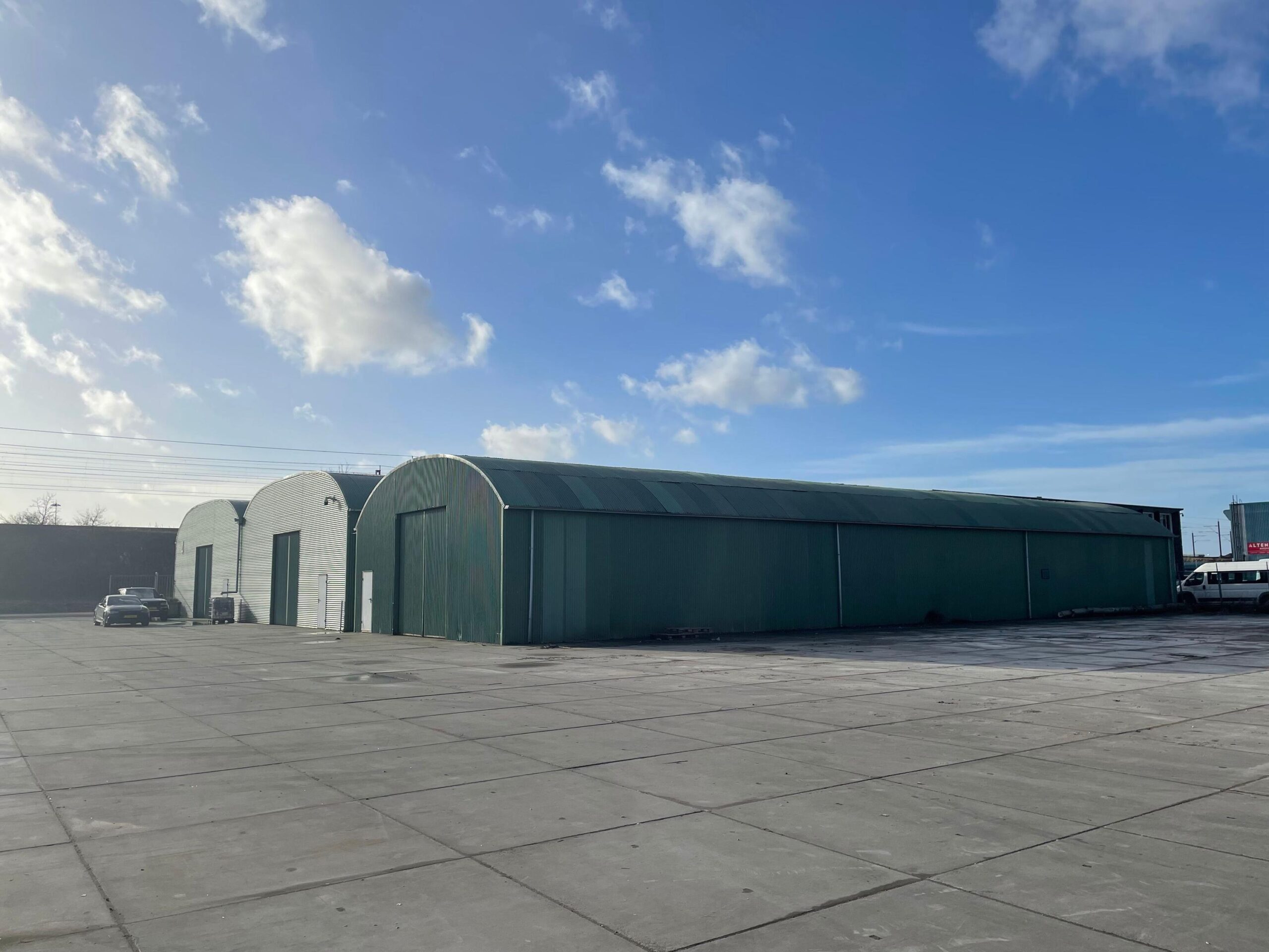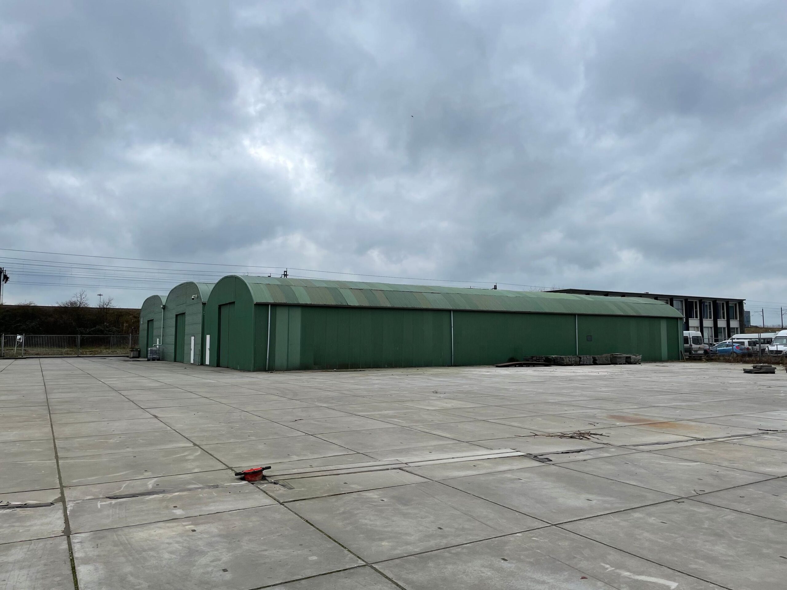 Het betreft hier een uitgestrekt buitenterrein van circa 5.332 m², verhard met stelconplaten, waarop twee Romney-loodsen zijn gesitueerd van ca. 1.592 m². Voor buitenopslag resteert dan nog circa 3.656 m².