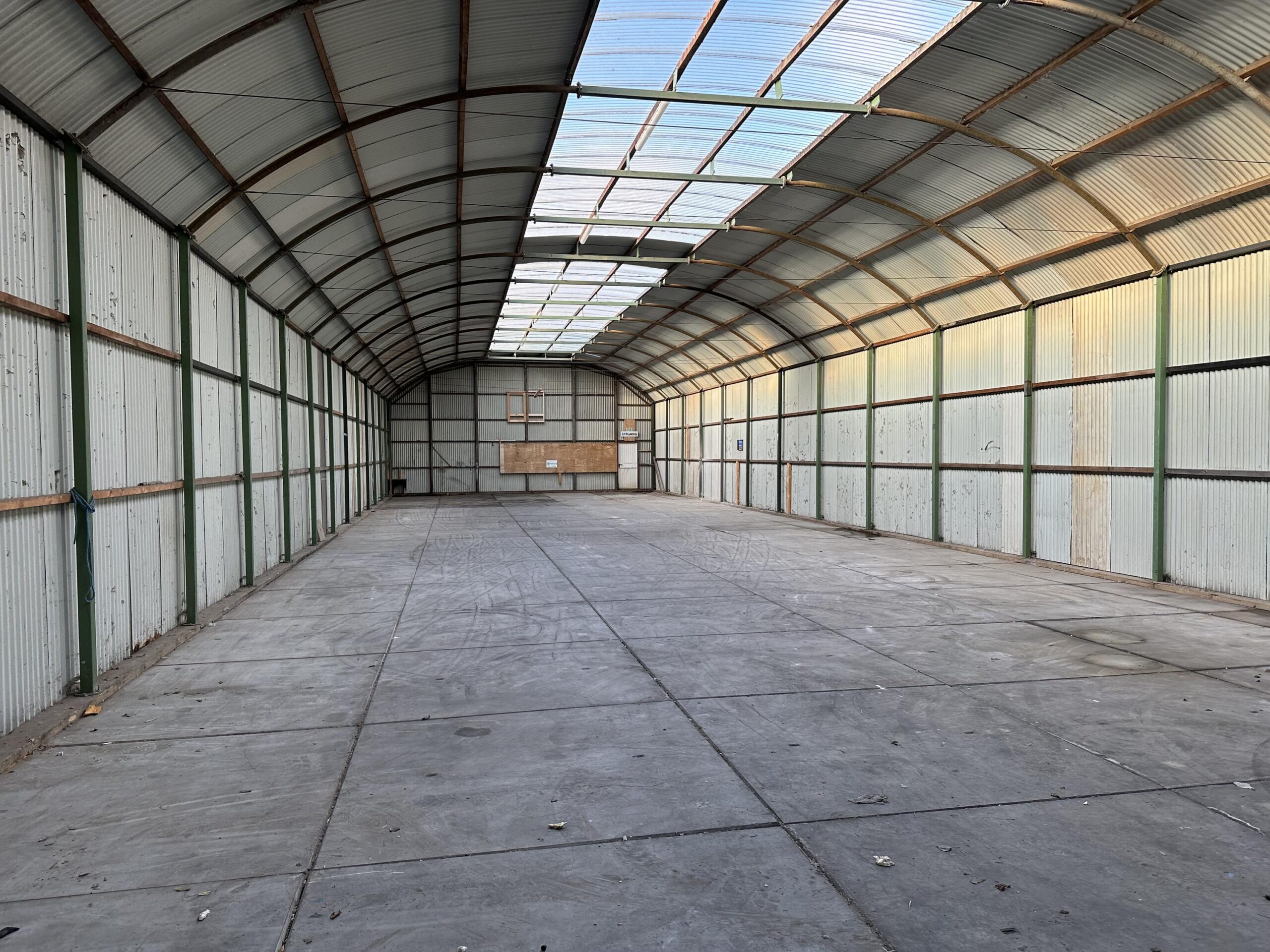 - 2 Romneyloodsen (vrije hoogte ca. 5,96 m) v.v. lichtstraten, verlichting, loopdeuren en dubbele schuifdeuren.