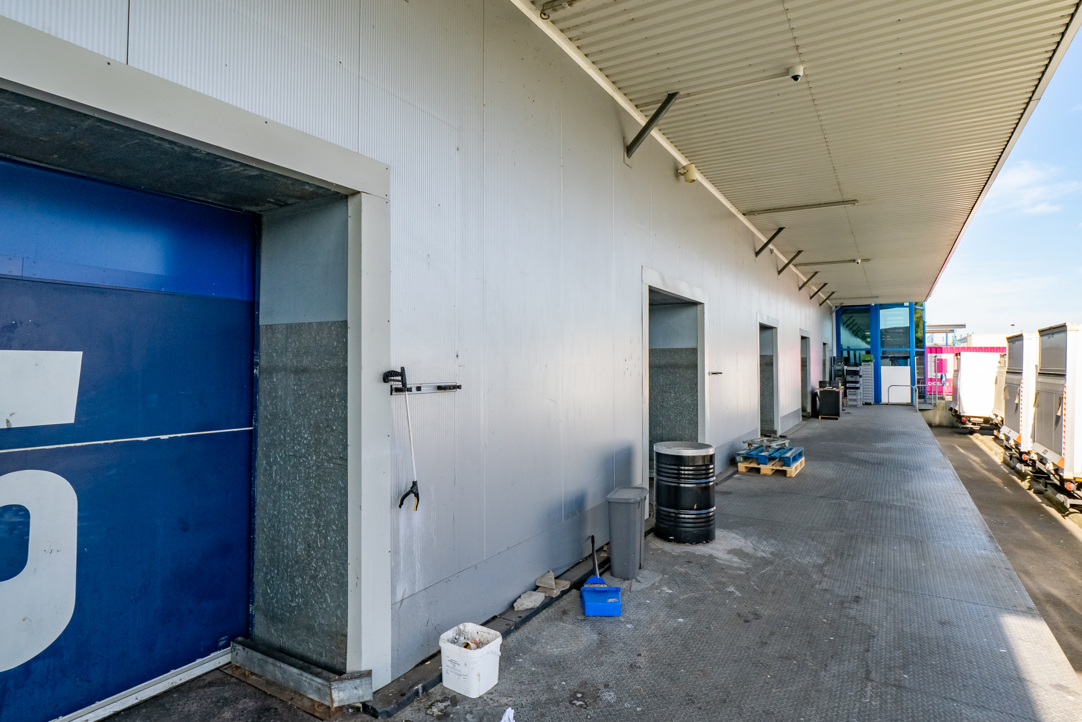 - 5 elektrische deuren met verhoogd bordes en luifel t.b.v. bakwagens
