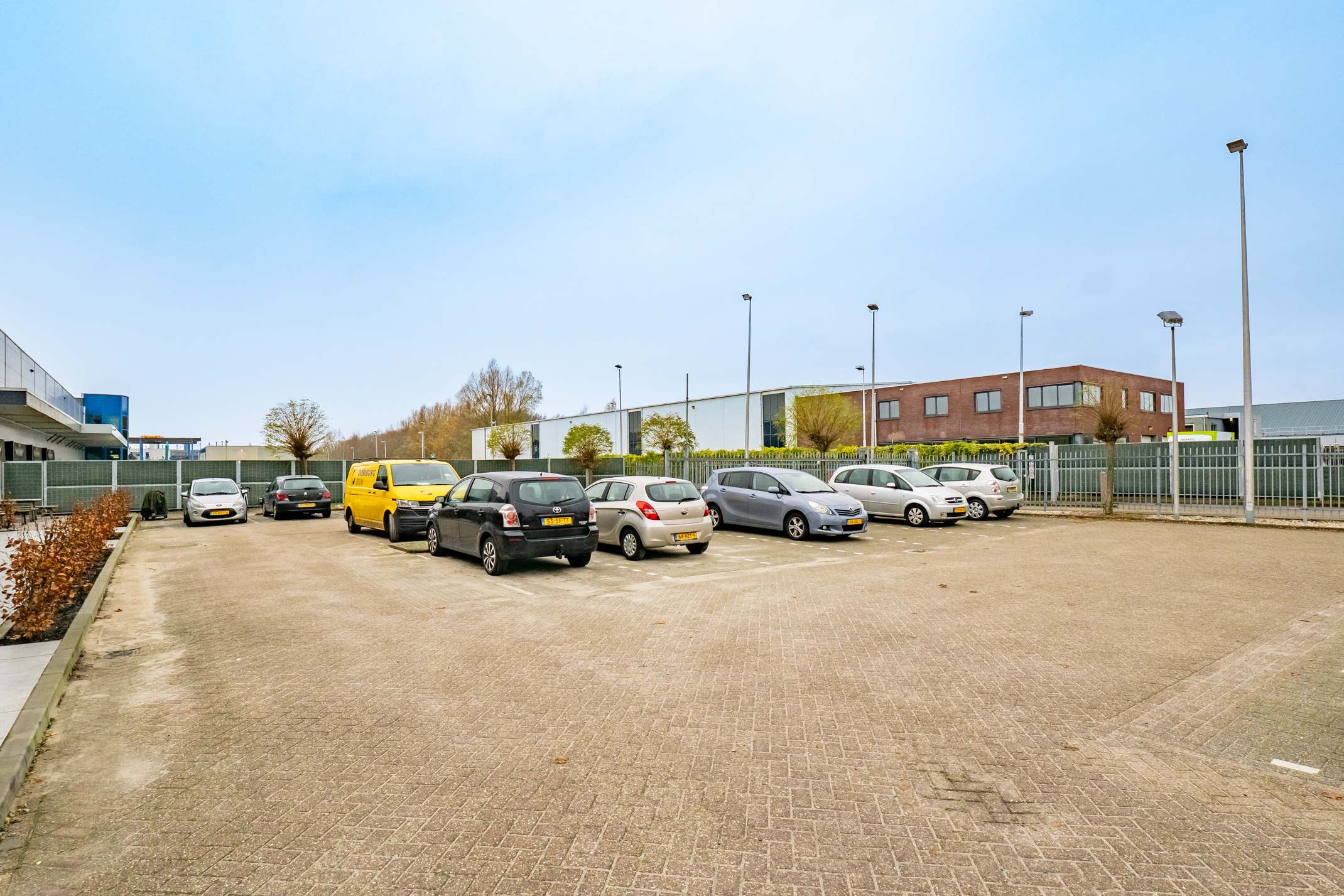 Ruim parkeren op het voorgelegen buiten-/rangeerterrein van ca 2.815 m². Dit terrein is geheel omheind en voorzien van een elektrisch schuifhekwerk.