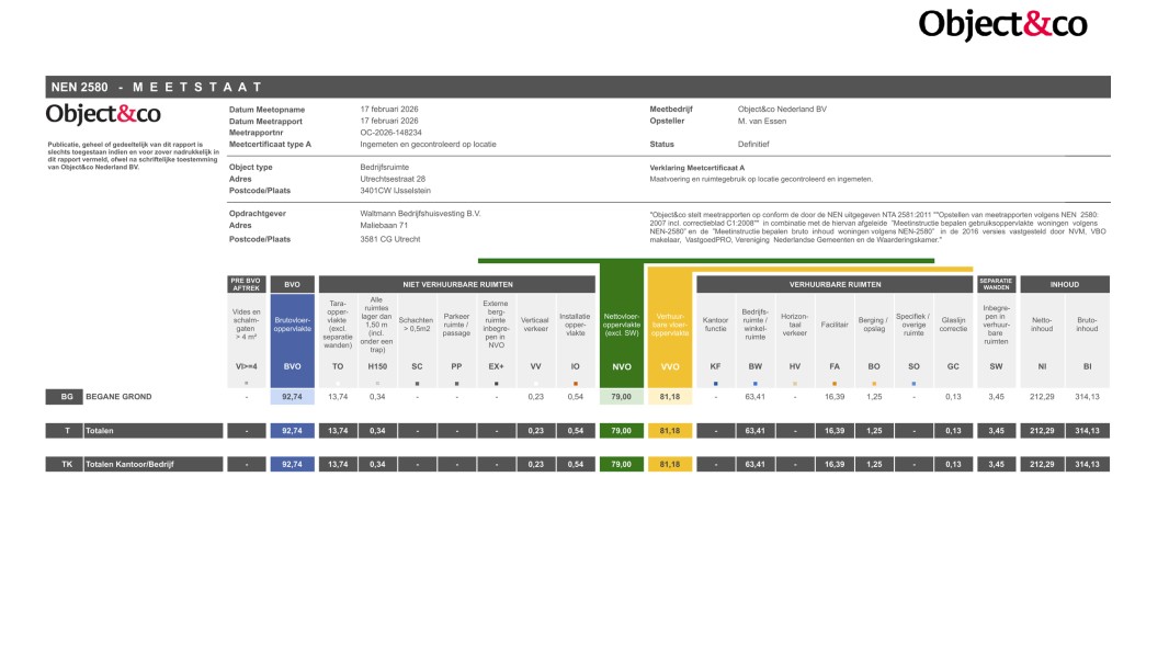 Het object wordt “as is, where is” verkocht en opgeleverd, leeg en bezemschoon en in de huidige staat.