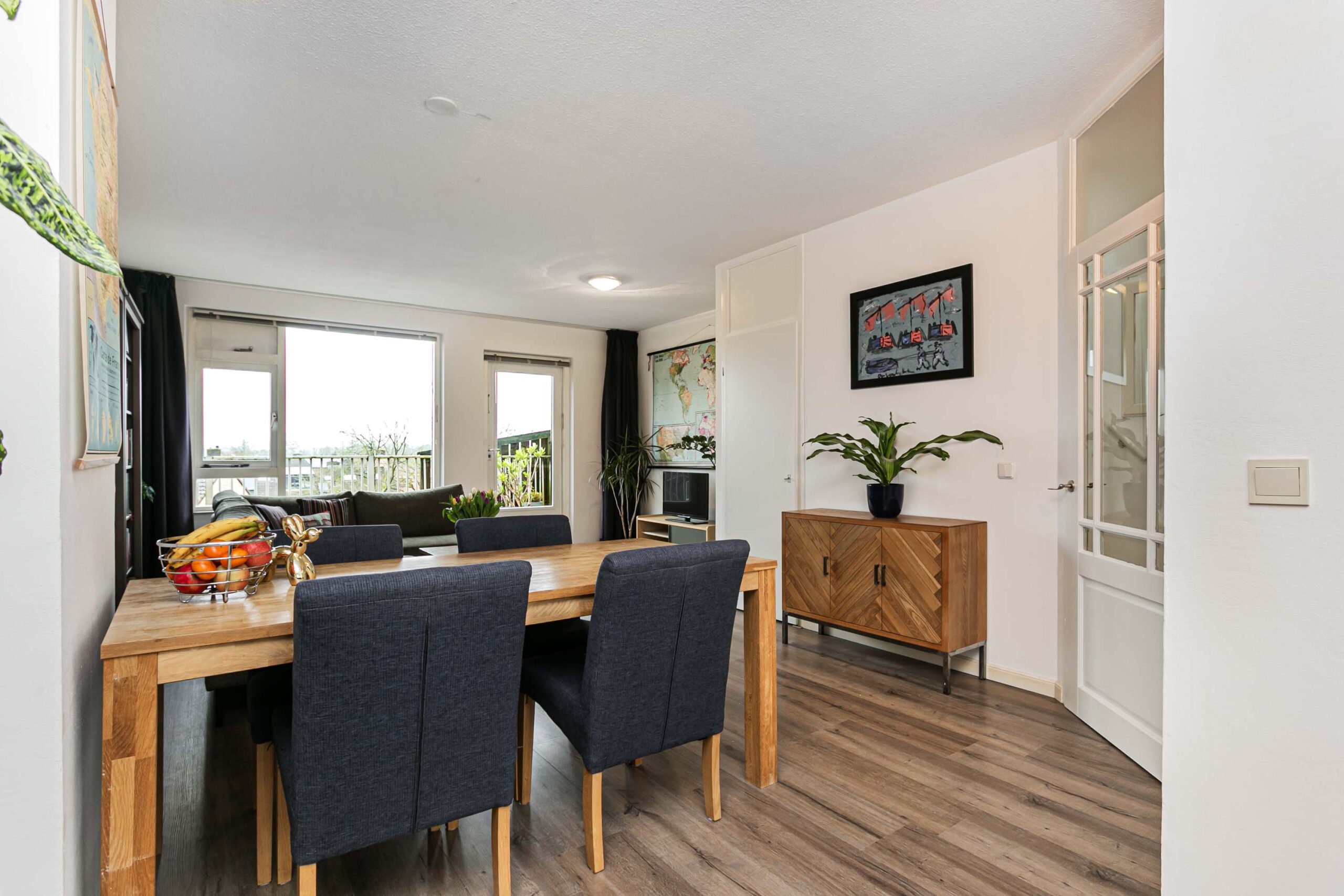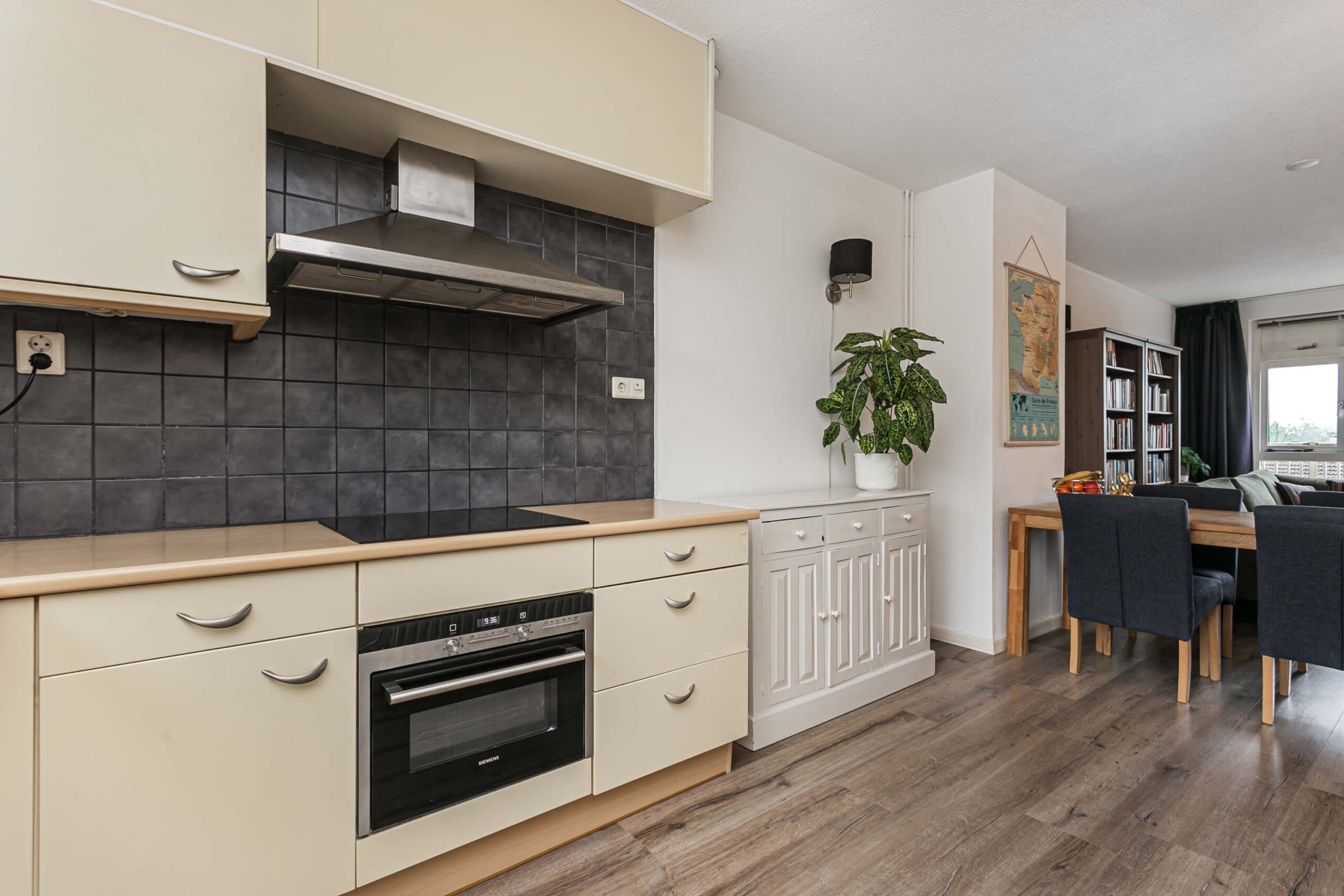 De doorzonwoonkamer is licht en sfeervol. Dankzij de grote raampartijen aan zowel de voor- als achterzijde geniet je hier de hele dag van natuurlijk licht en het vrije uitzicht. Vanuit de woonkamer stap je direct het balkon op het zuidoosten, waar je van ’s ochtends tot in de namiddag heerlijk van de zon kunt genieten. De zonwering en het terrasscherm zorgen daarbij voor de nodige beschutting en privacy.