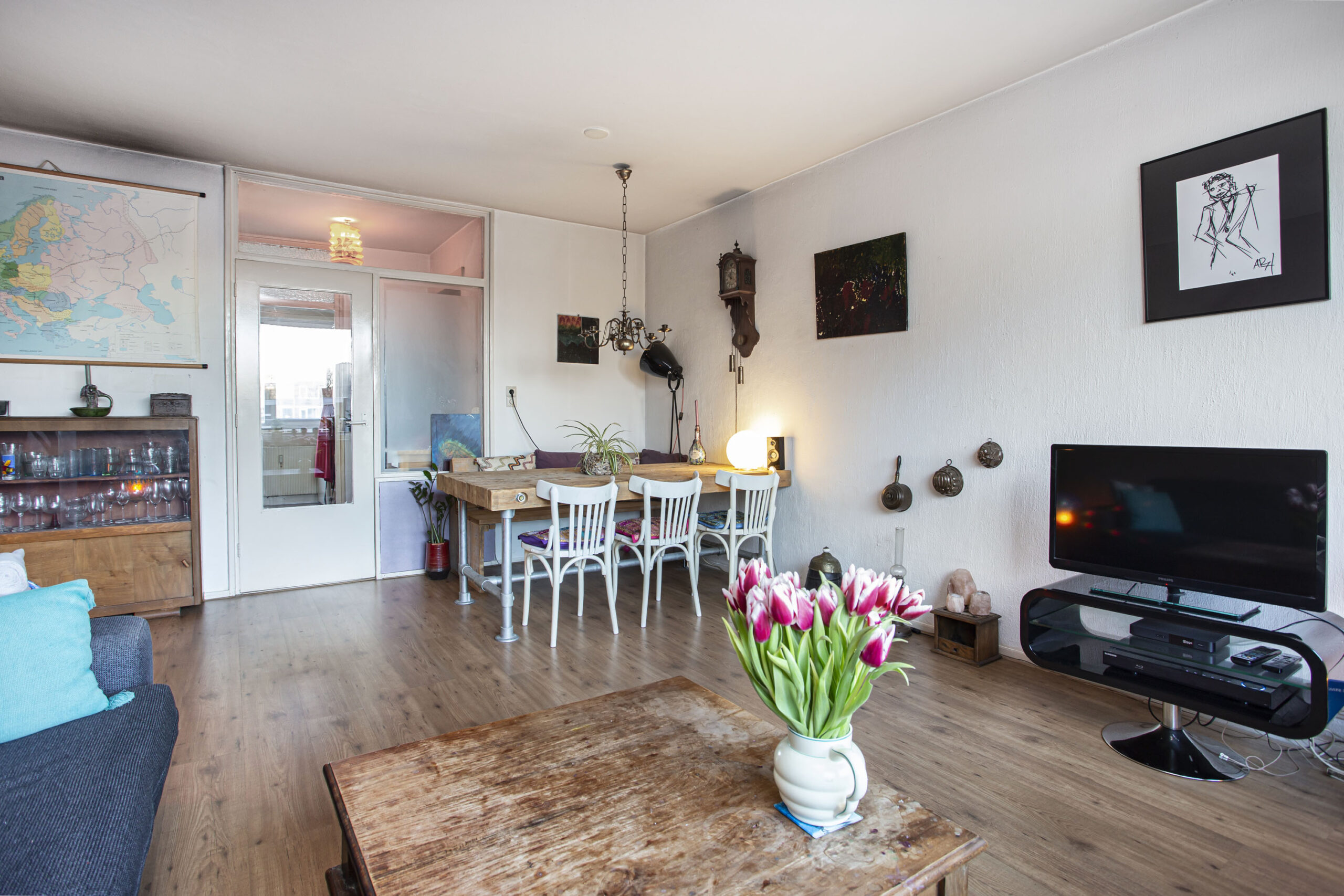 De woonkamer, met zijn grote raampartijen, baadt in het licht en creëert een aangename en uitnodigende sfeer. De woonkamer heeft vrij uitzicht over het achtergelegen plantsoen waardoor privacy gewaarborgd is. Vanuit de woonkamer heb je directe toegang tot het balkon aan de achterzijde van de woning. Dit balkon ligt op het zuidwesten, waardoor je zowel 's middags als 's avonds kunt genieten van de zon. Het is een perfecte plek om te ontspannen en de dag af te sluiten.