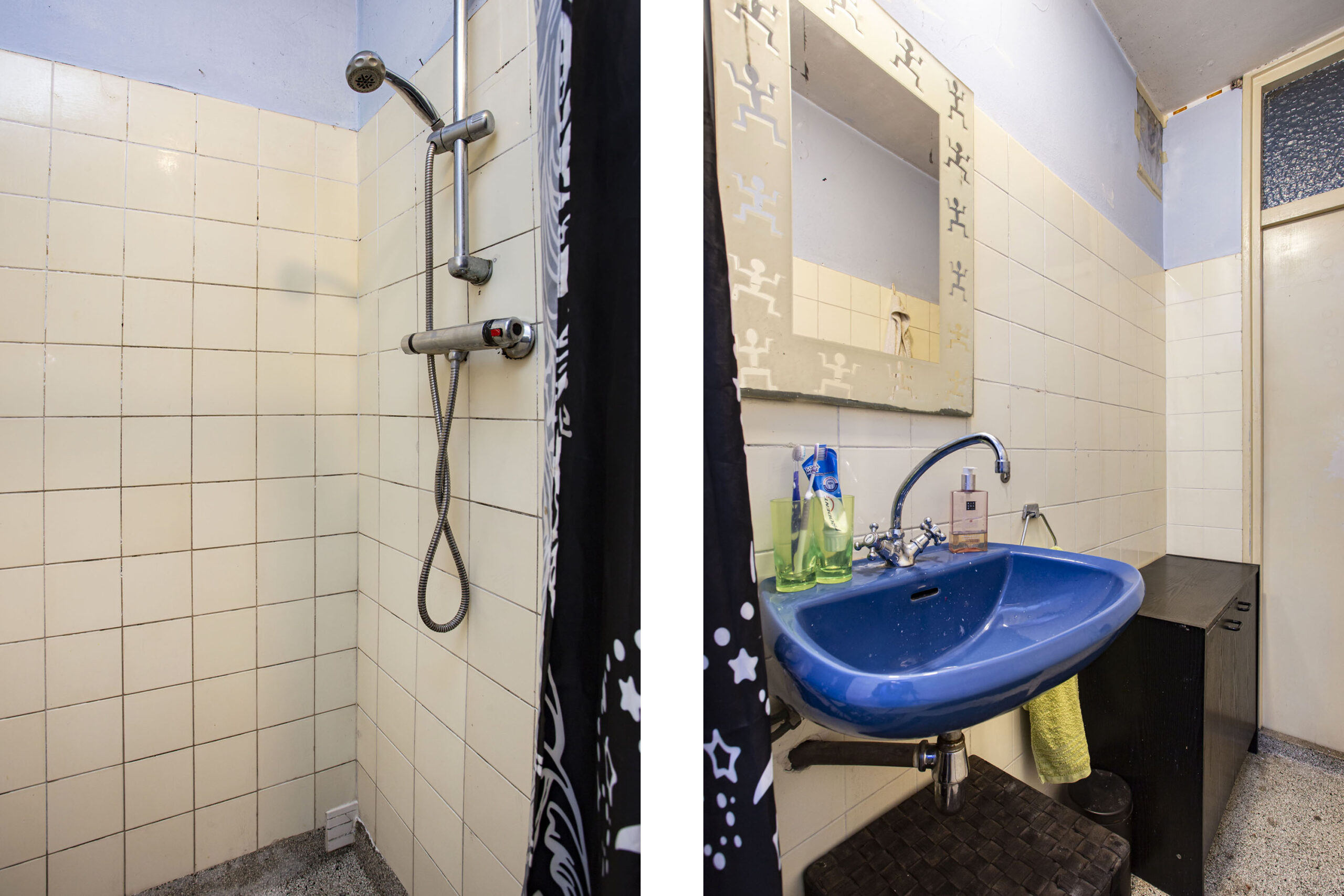 Vanuit de woonkamer zijn zowel de slaapkamers als de badkamer bereikbaar. De slaapkamers aan de achterzijde van de woning bieden voldoende ruimte voor een kledingkast of bureau. De royale slaapkamer aan de voorzijde heeft directe toegang tot een inpandige inloopkast. De badkamer is eenvoudig, maar functioneel ingericht met een douche en een wastafel, wat zorgt voor een praktische en efficiënte ruimte.