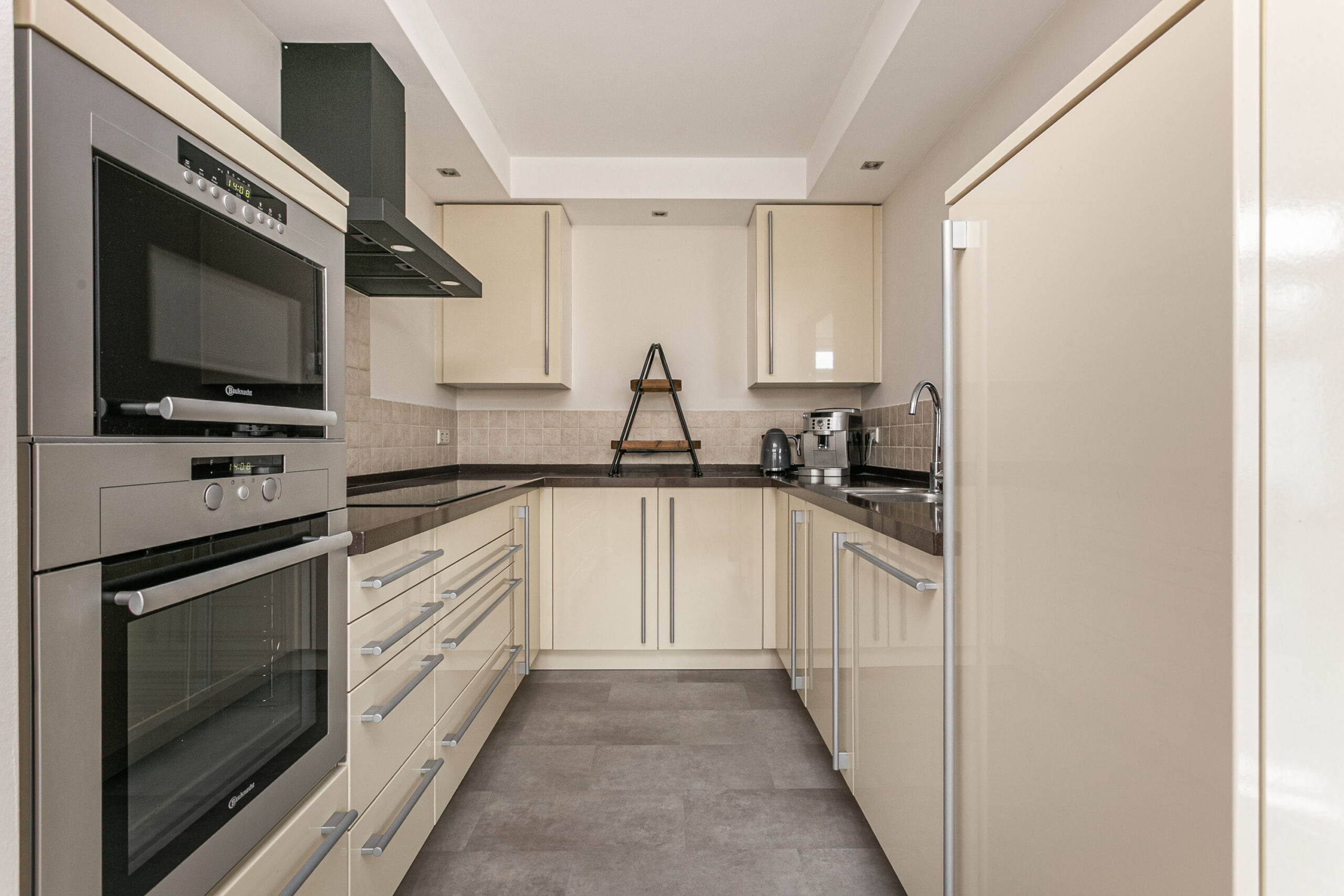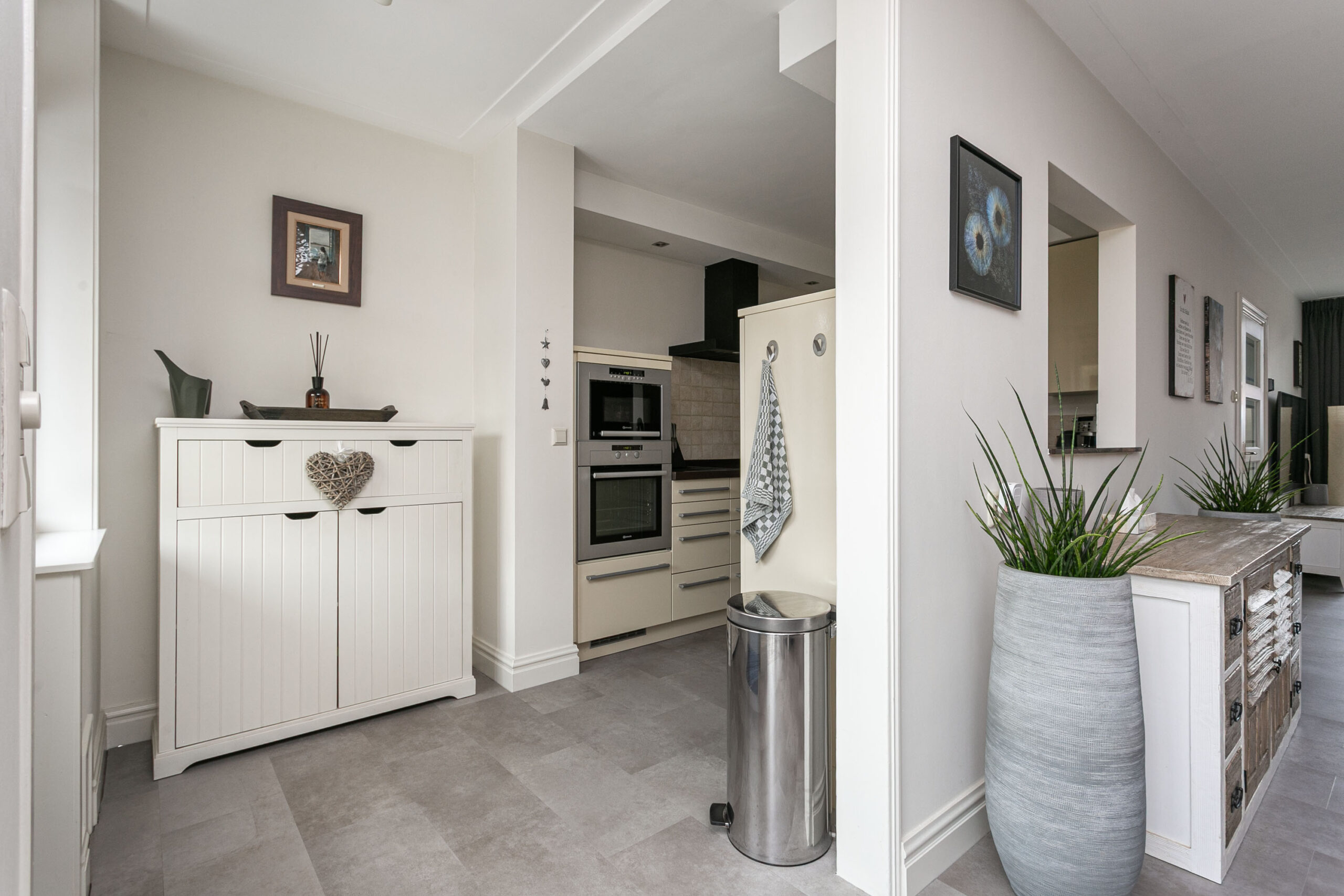 Entree/hal met meterkast, toilet en trapopgang. Riante uitgebouwde woonkamer met PVC-vloer, dubbele openslaande deuren naar de tuin, mogelijkheid houtkachel (is ter overname) en doorgang naar de halfopen keuken. De keuken is in lichte kleurstelling en uitgevoerd in een riante U-opstelling voorzien van granieten werkblad, veel kastruimte en alle inbouwapparatuur: keramische kookplaat, oven, magnetron, afzuigkap, koelkast en vaatwasser.