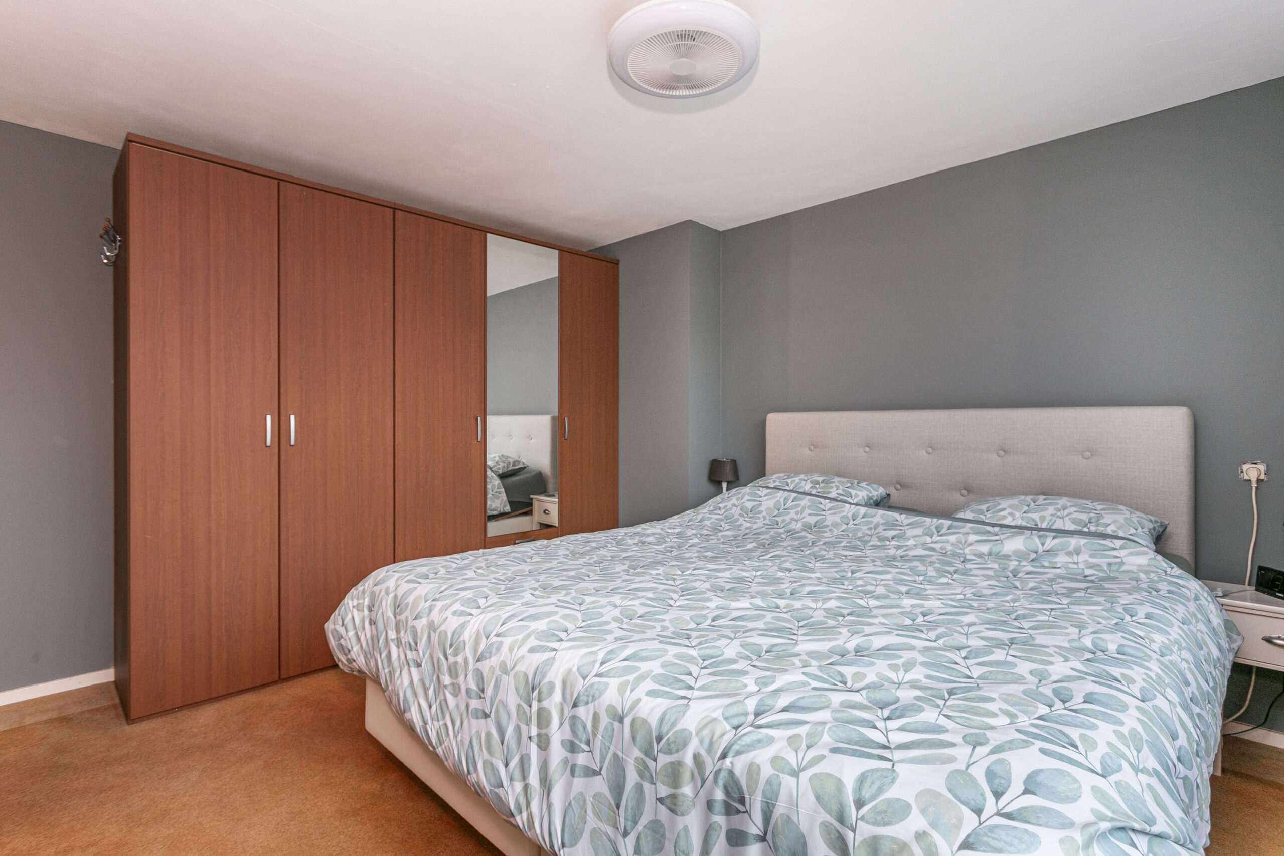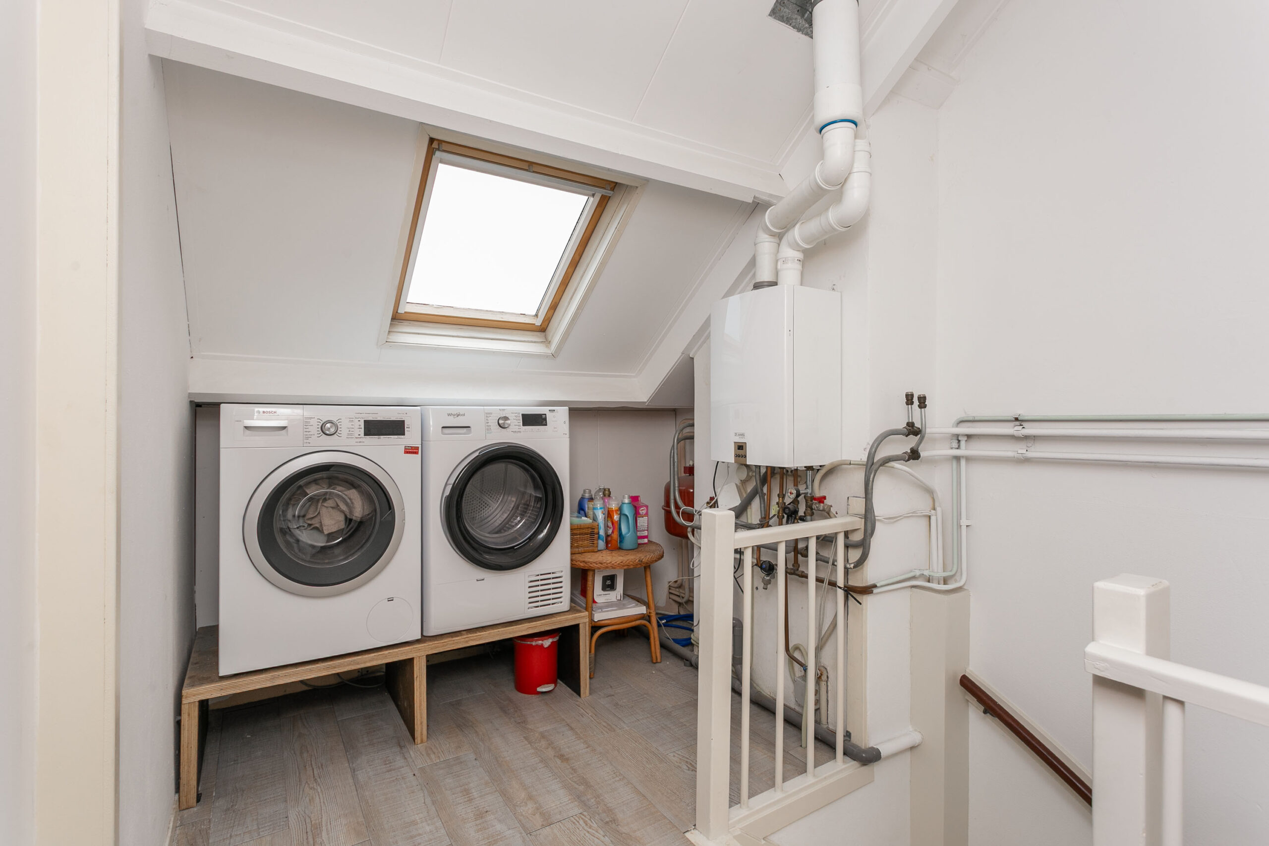 Voorzolder met aansluitingen wasmachine en droger, combiketel (HR uit 2021), grote bergruimte en 4e slaapkamer met aan zowel de voor- als achterzijde een grote dakkapel. Er is in de slaapkamer een ingebouwd bed aanwezig met daarnaast ook ingebouwde kastruimte.