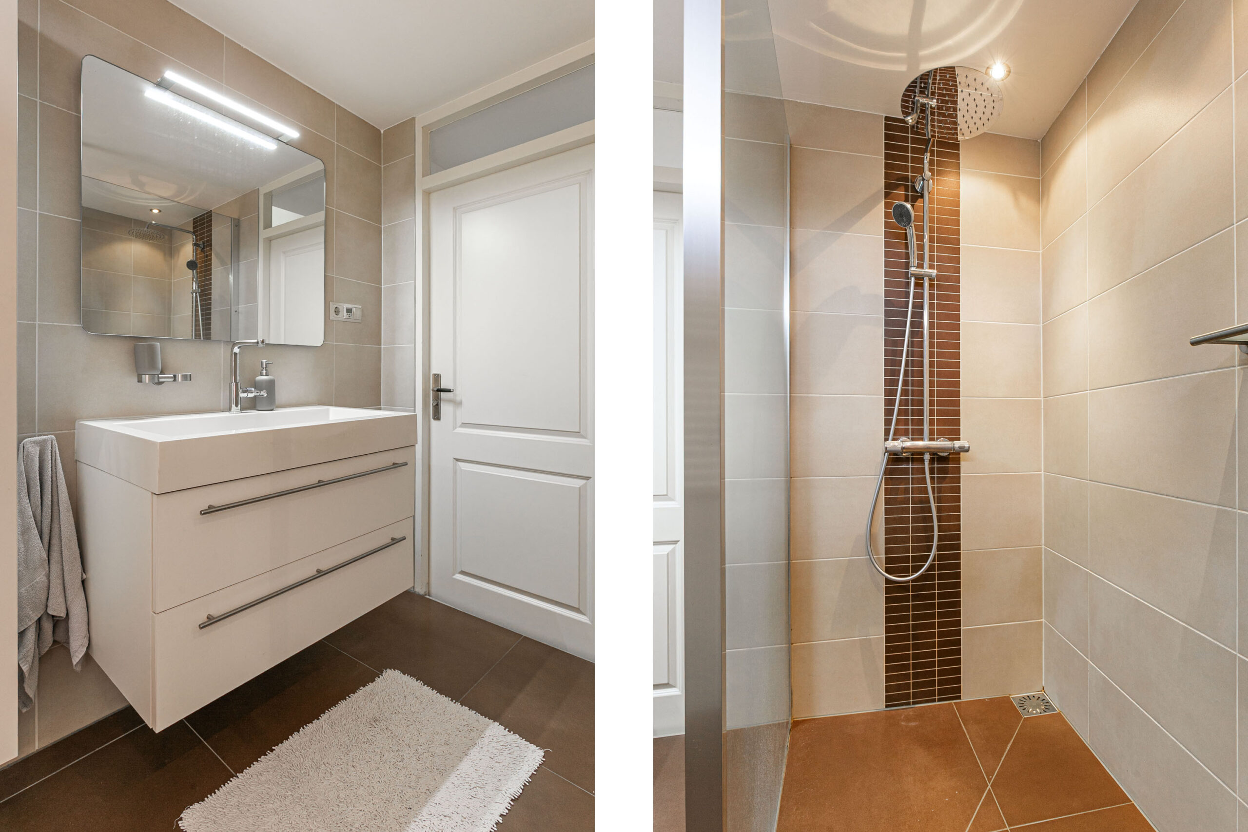 Overloop met toegang tot 3 ruime slaapkamers alsmede een moderne badkamer. De badkamer is voorzien van vloerverwarming, royale inloopdouche met regendouche, wastafelmeubel en 2e toilet (wandcloset).
