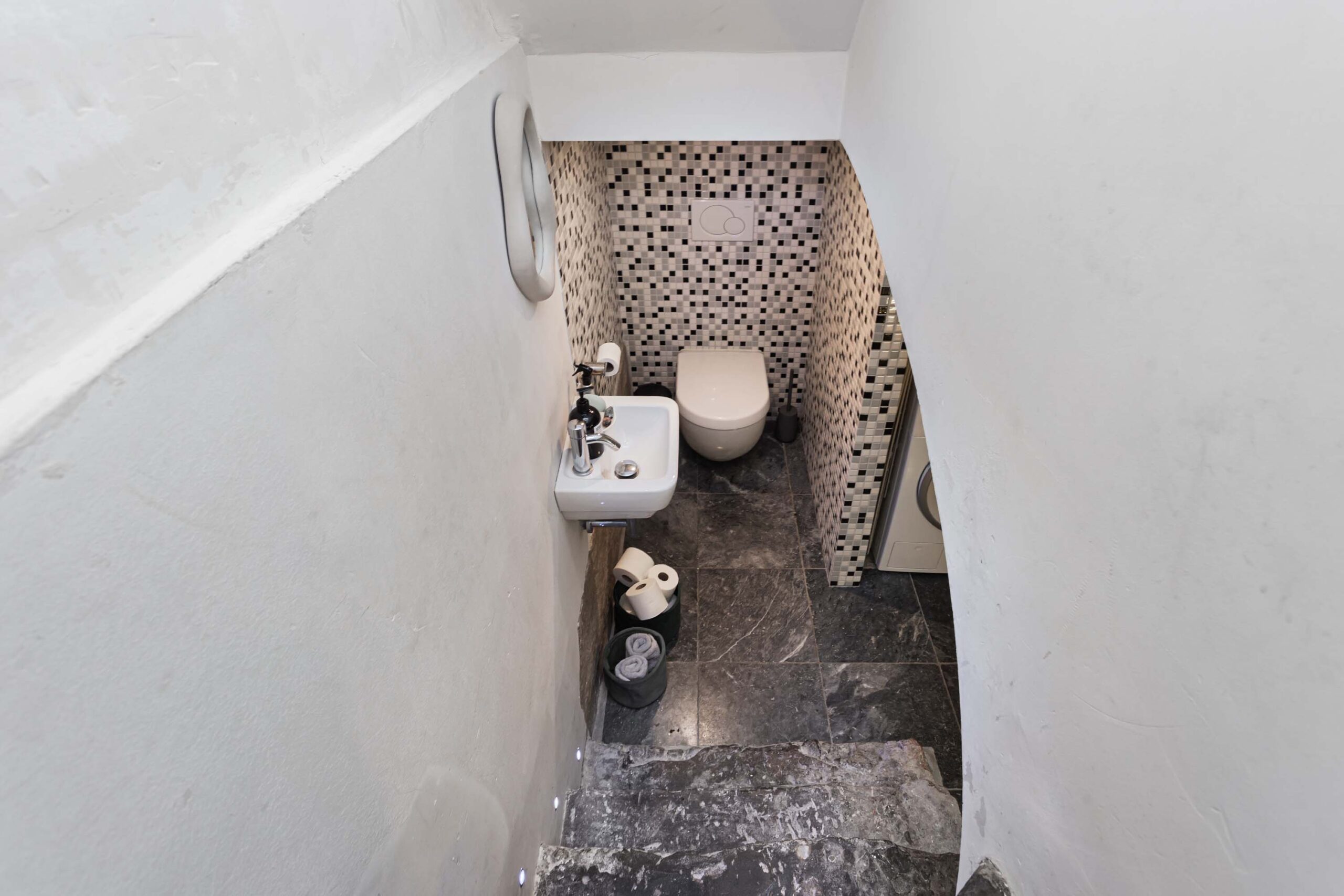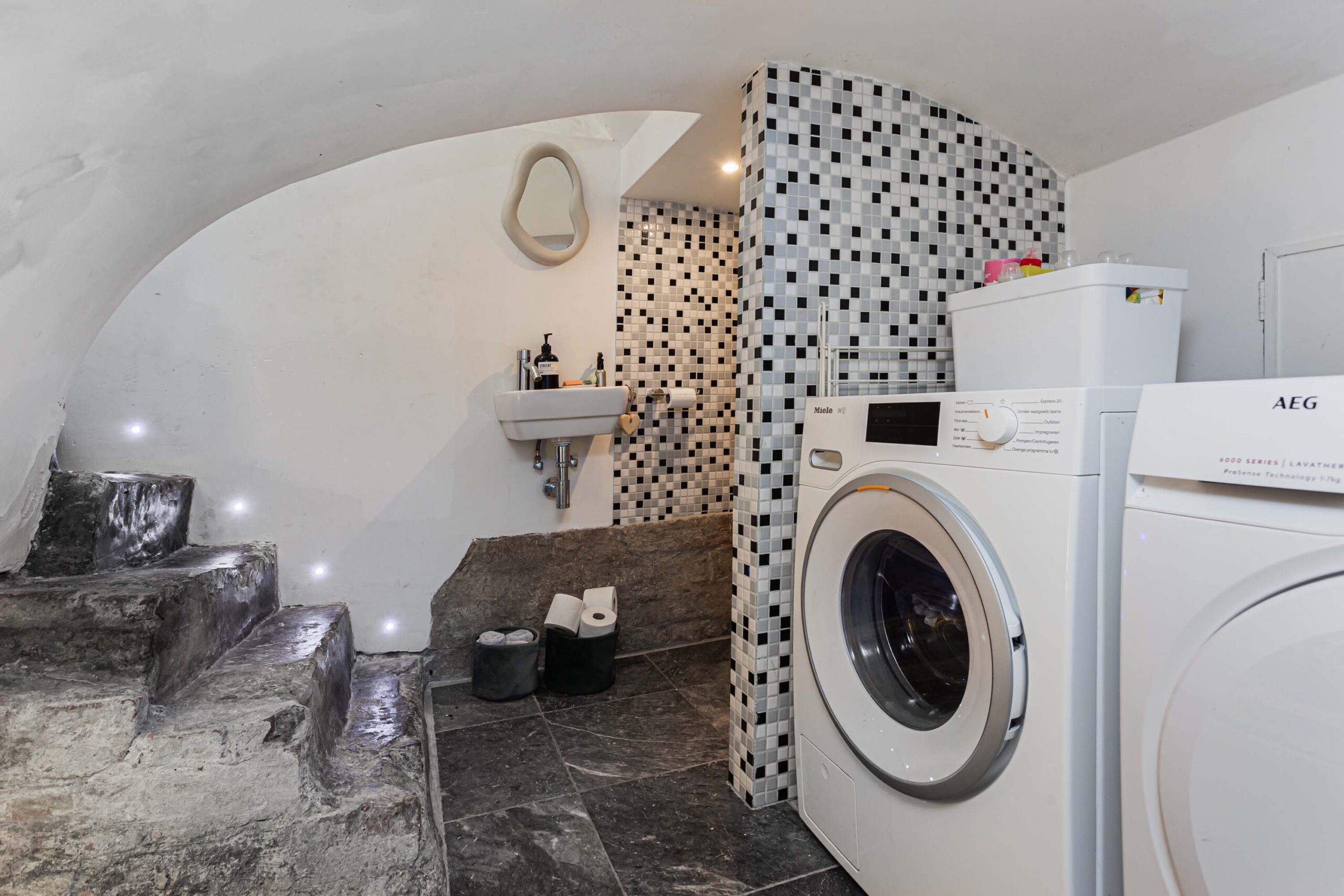Vanuit de keuken bereik je de werfkelder via een monumentale trap, welke is voorzien van een toilet met fontein. Tevens bevindt zich hier de unit van de stadsverwarming en aansluitingen t.b.v. wasmachine en droger.