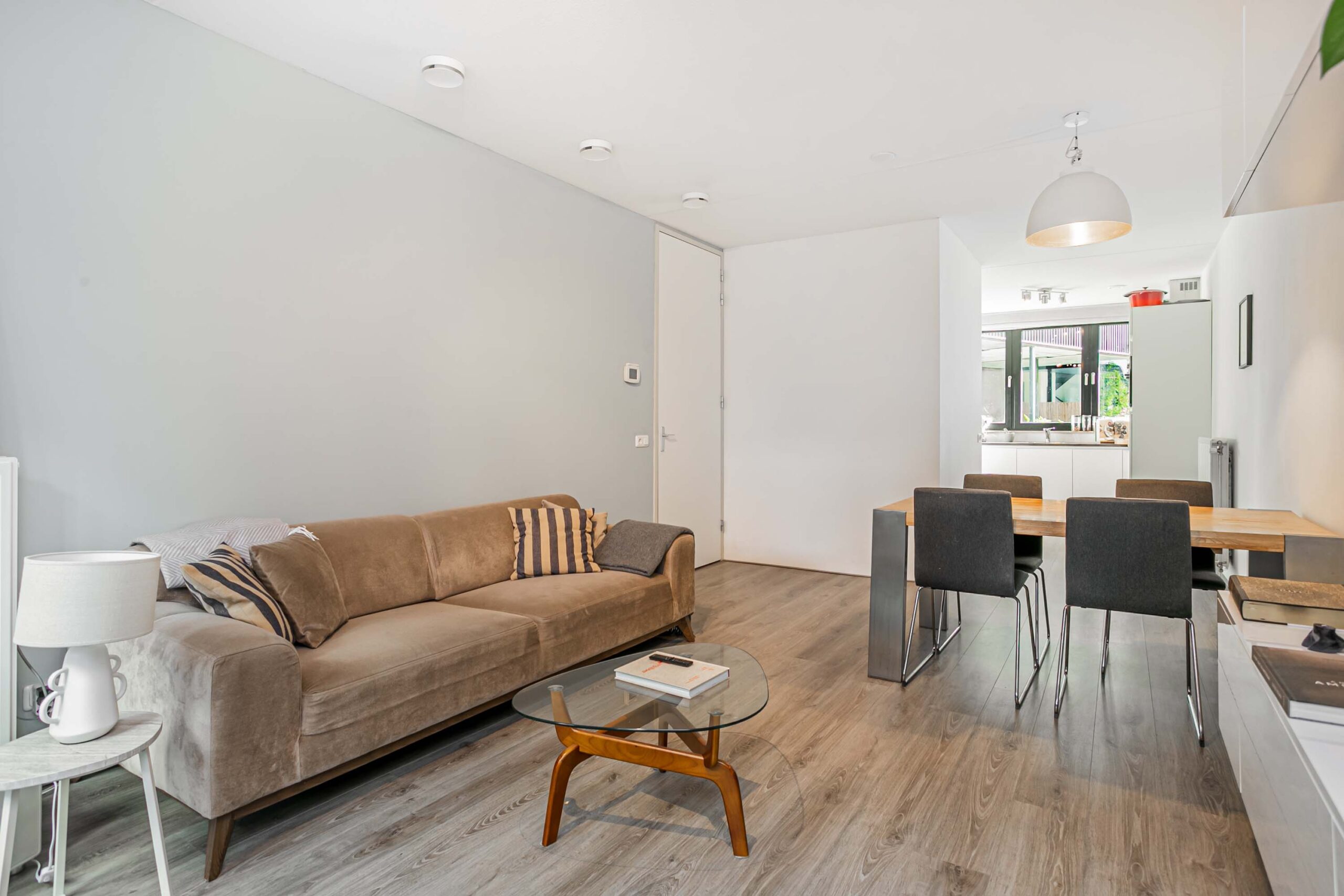 Met de lift kom je uit in de binnentuin, hier doorheen gelopen bereik je het appartement. Entree/hal met meterkast en toilet (wandcloset en fontein). Ruime woonkamer met open keuken. De woonkamer heeft grote open slaande deuren met franse balkons, laminaatvloer en strakke stucwerkwanden. De open keuken is in een L-vorm en voorzien van alle apparatuur: inductie kookplaat, afzuigkap, combimagnetron/oven, koelkast en vaatwasser. Inpandige berging met aansluiting wasmachine. Vanuit de keuken is middels dubbele deuren het terras bereikbaar.