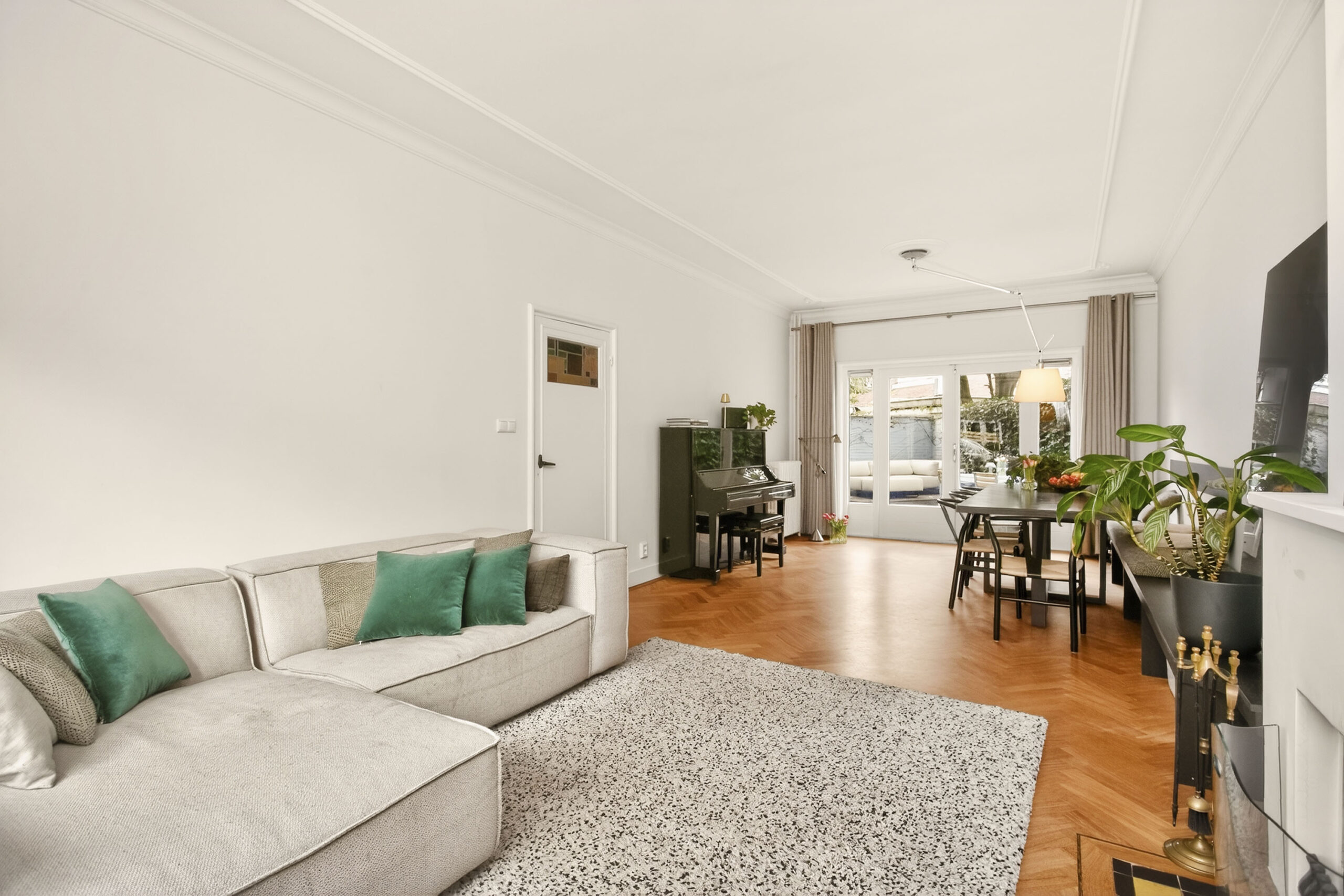 Woonkamer: 8.13 x 3.72 m.