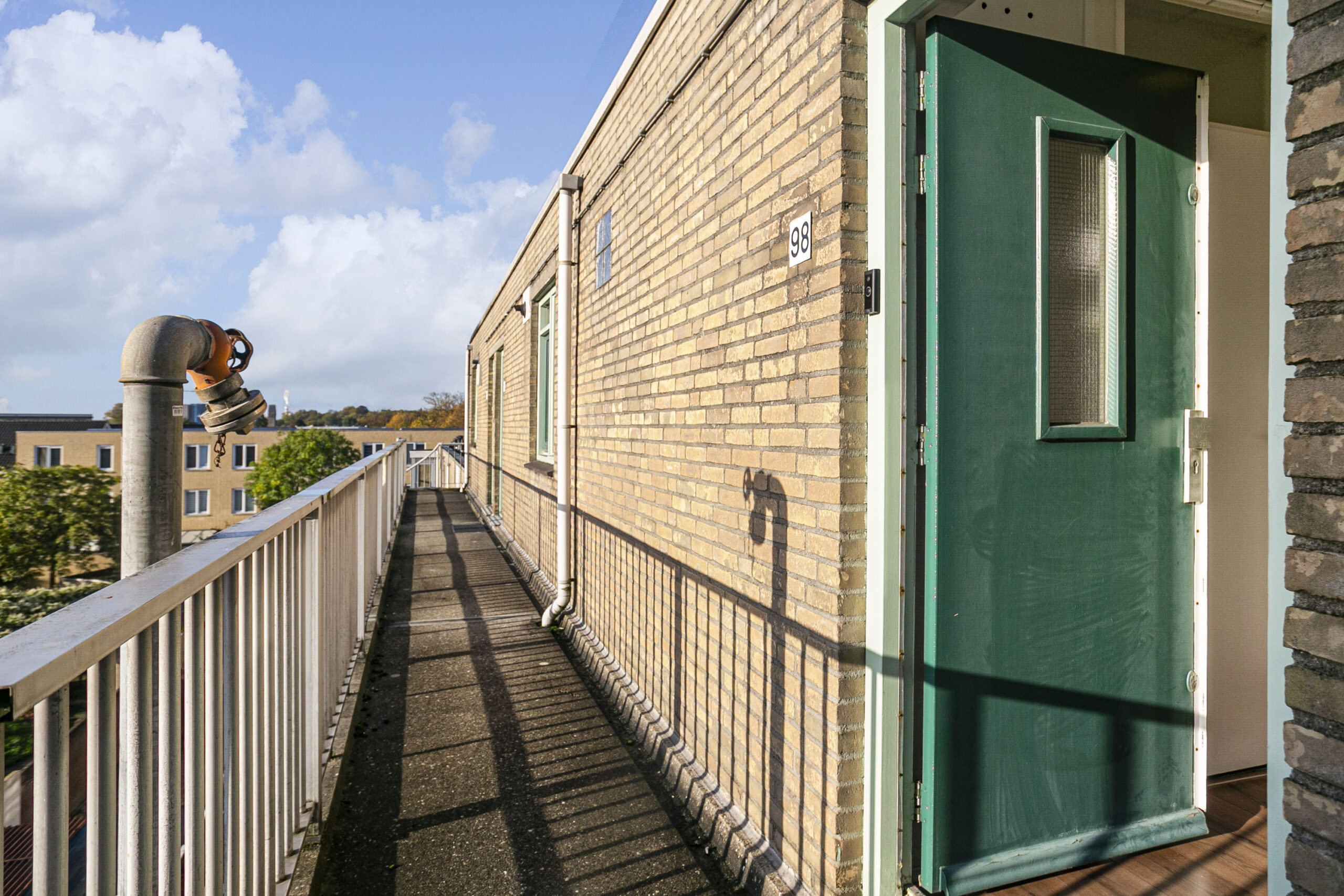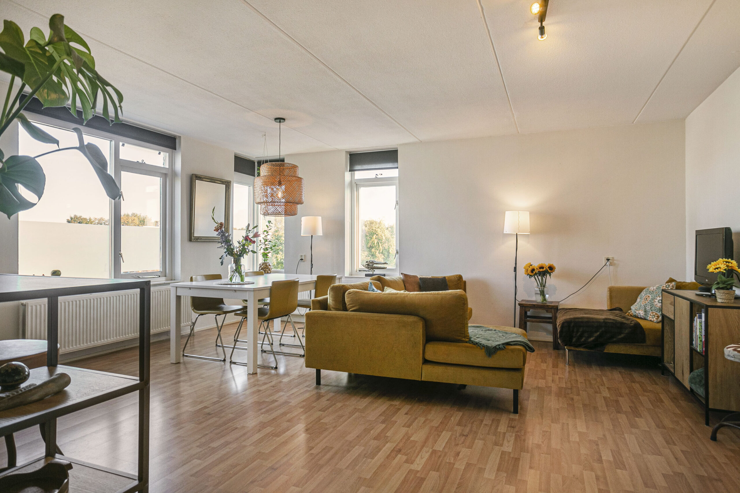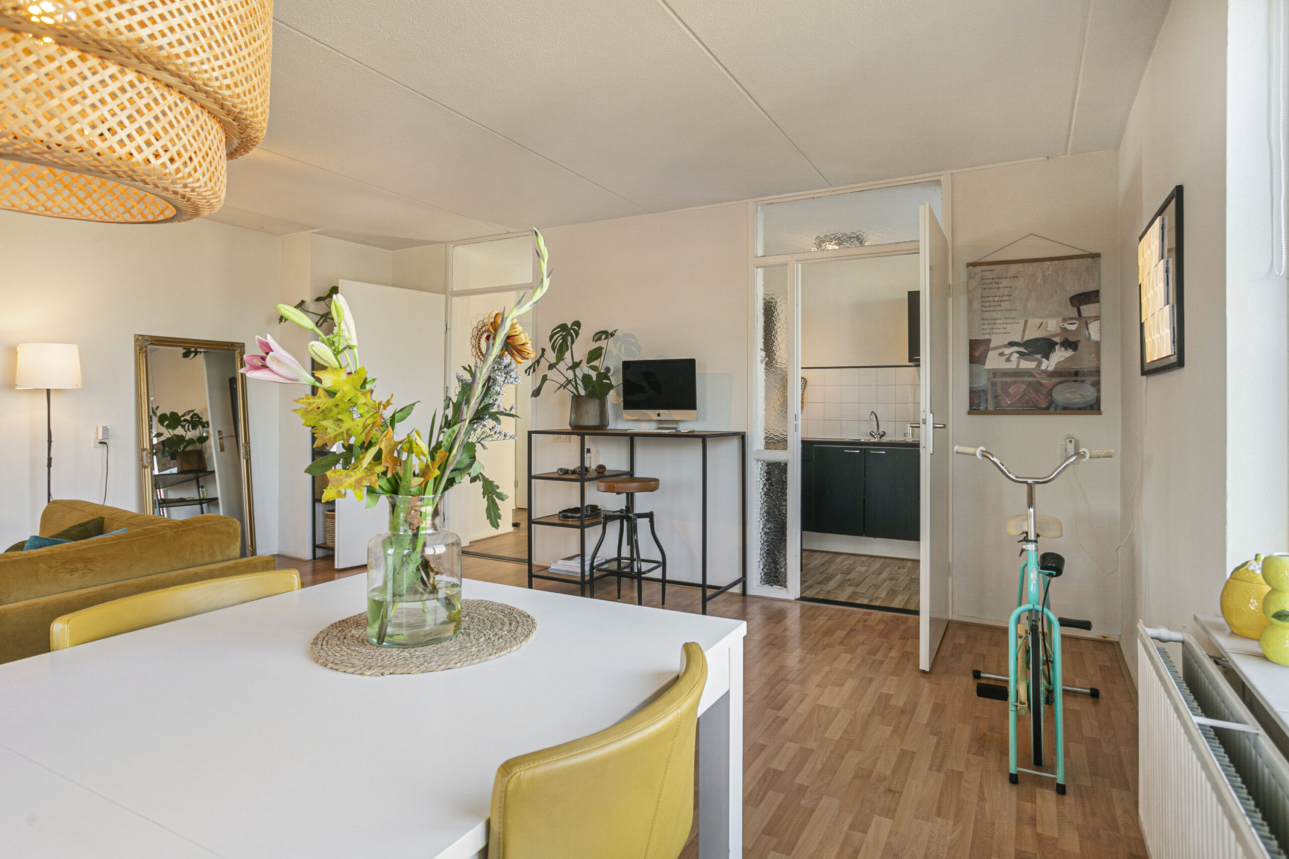 Via korte galerij is er toegang tot de woning. Hal met meterkast en bergkast met combiketel (Remeha HR, 2023), toilet met fontein. Ruime slaapkamer met laminaatvloer en aansluitend de badkamer. De badkamer is voorzien van inloopdouche, wastafelmeubel en wasmachine aansluiting. Royale woonkamer met fraai uitzicht over de wijk, laminaatvloeren, lichte wanden en plafonds en aansluitend zit de dichte keuken. Keuken met eenvoudige maar nette keukenopstelling met vaatwasser en koel/vriescombinatie (2022). Vanuit de keuken is het balkon (op het noordwesten) te bereiken.