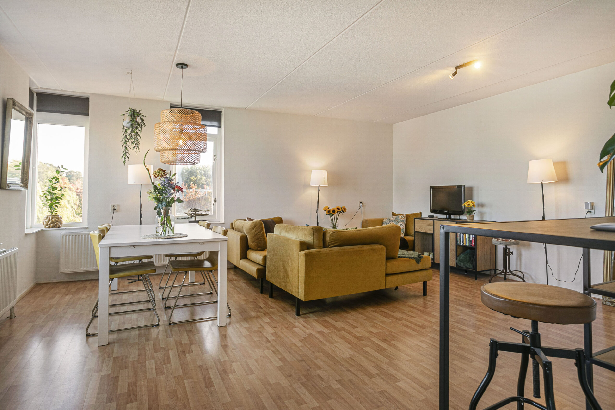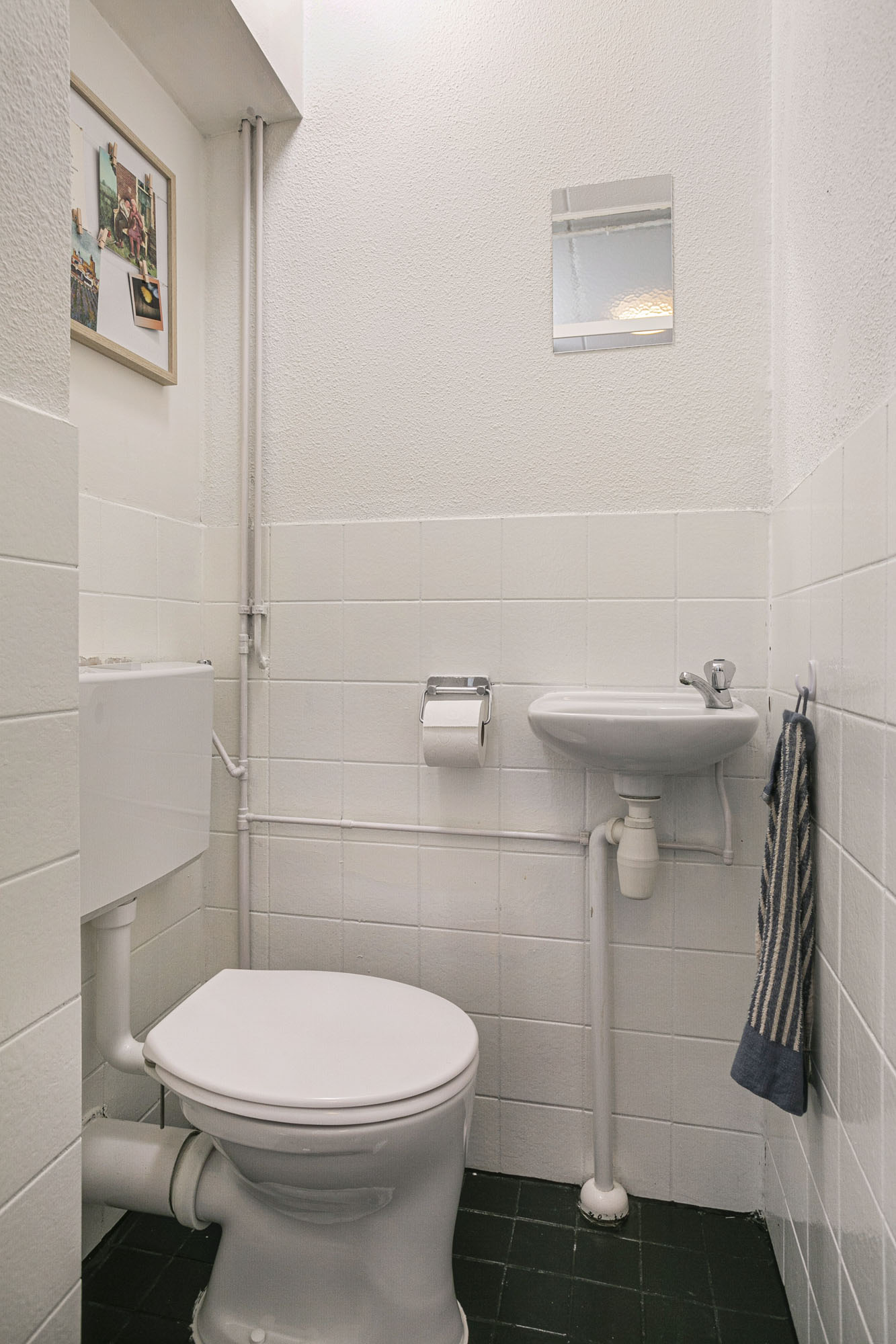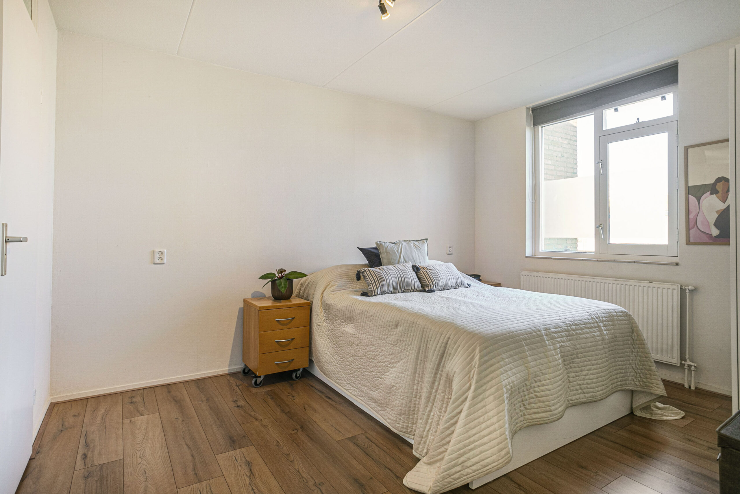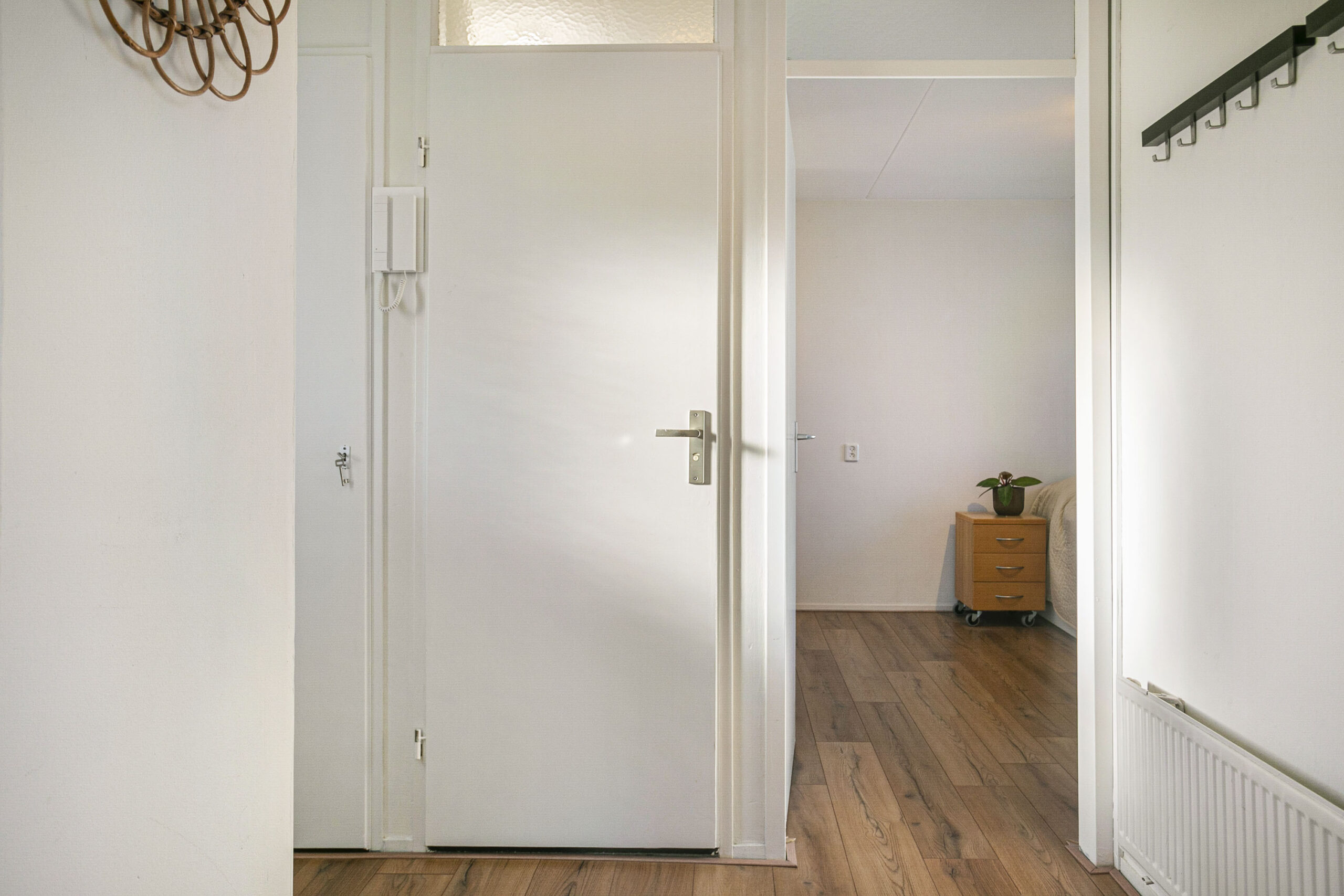 Via korte galerij is er toegang tot de woning. Hal met meterkast en bergkast met combiketel (Remeha HR, 2023), toilet met fontein. Ruime slaapkamer met laminaatvloer en aansluitend de badkamer. De badkamer is voorzien van inloopdouche, wastafelmeubel en wasmachine aansluiting. Royale woonkamer met fraai uitzicht over de wijk, laminaatvloeren, lichte wanden en plafonds en aansluitend zit de dichte keuken. Keuken met eenvoudige maar nette keukenopstelling met vaatwasser en koel/vriescombinatie (2022). Vanuit de keuken is het balkon (op het noordwesten) te bereiken.
