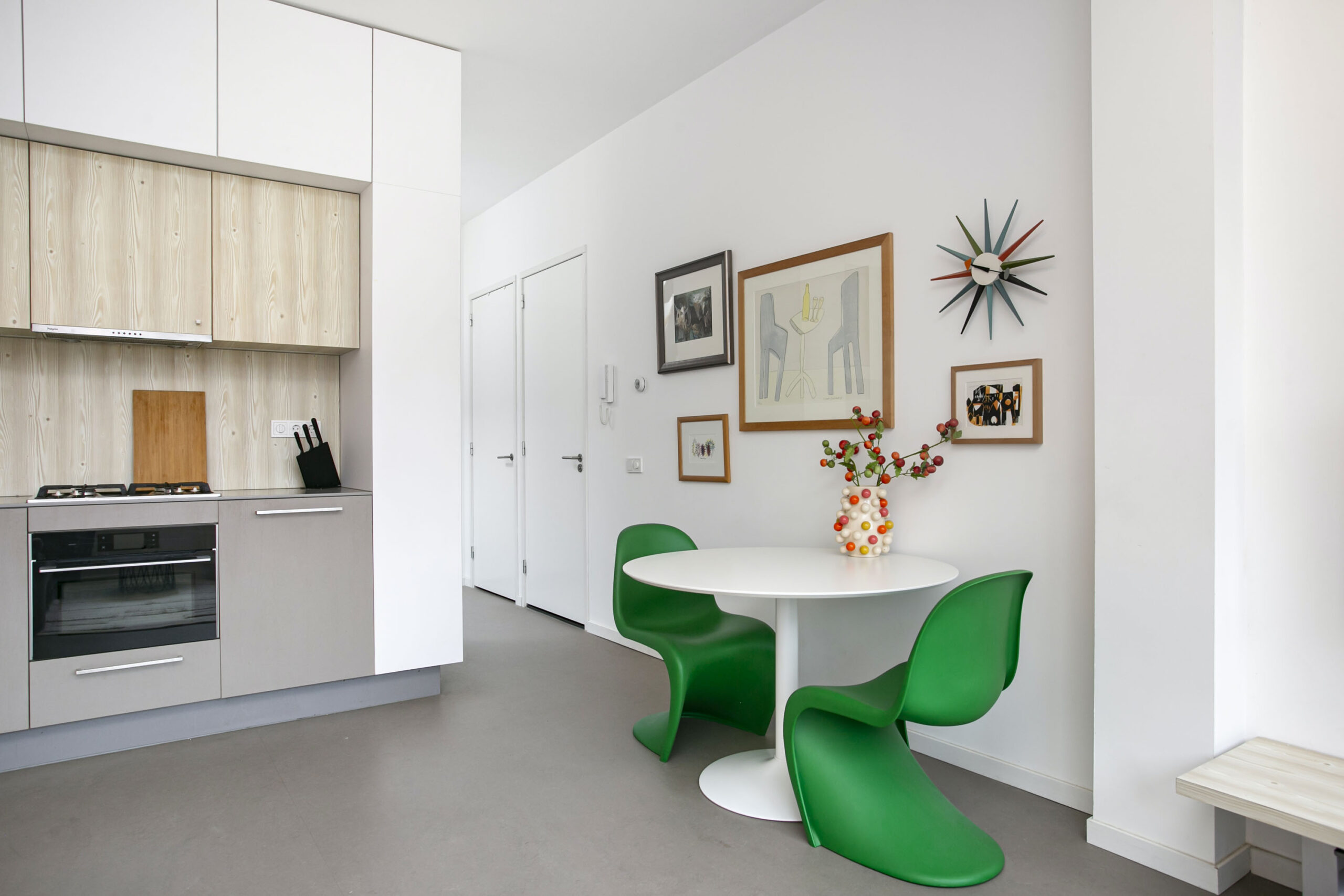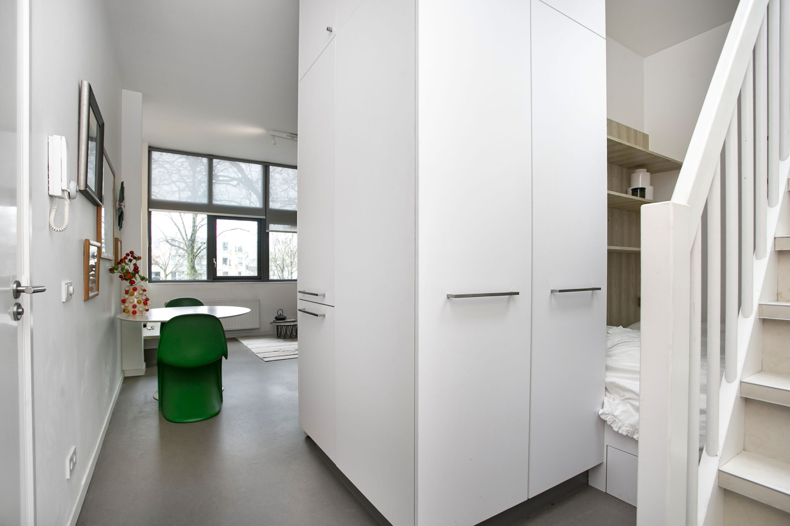 Dit studio-appartement is op zijn minst gezegd bijzonder te noemen, zelden kom je een dergelijk efficiënt ingedeelde woning tegen als deze. De hoge plafonds, de grote raampartijen, de positionering van de keuken met de vele ingebouwde kasten maken dat dit appartement verrassend ruim aanvoelt. Tel daarbij het royale, groene dakterras en je hebt hier de woning waar je toch direct in wilt.