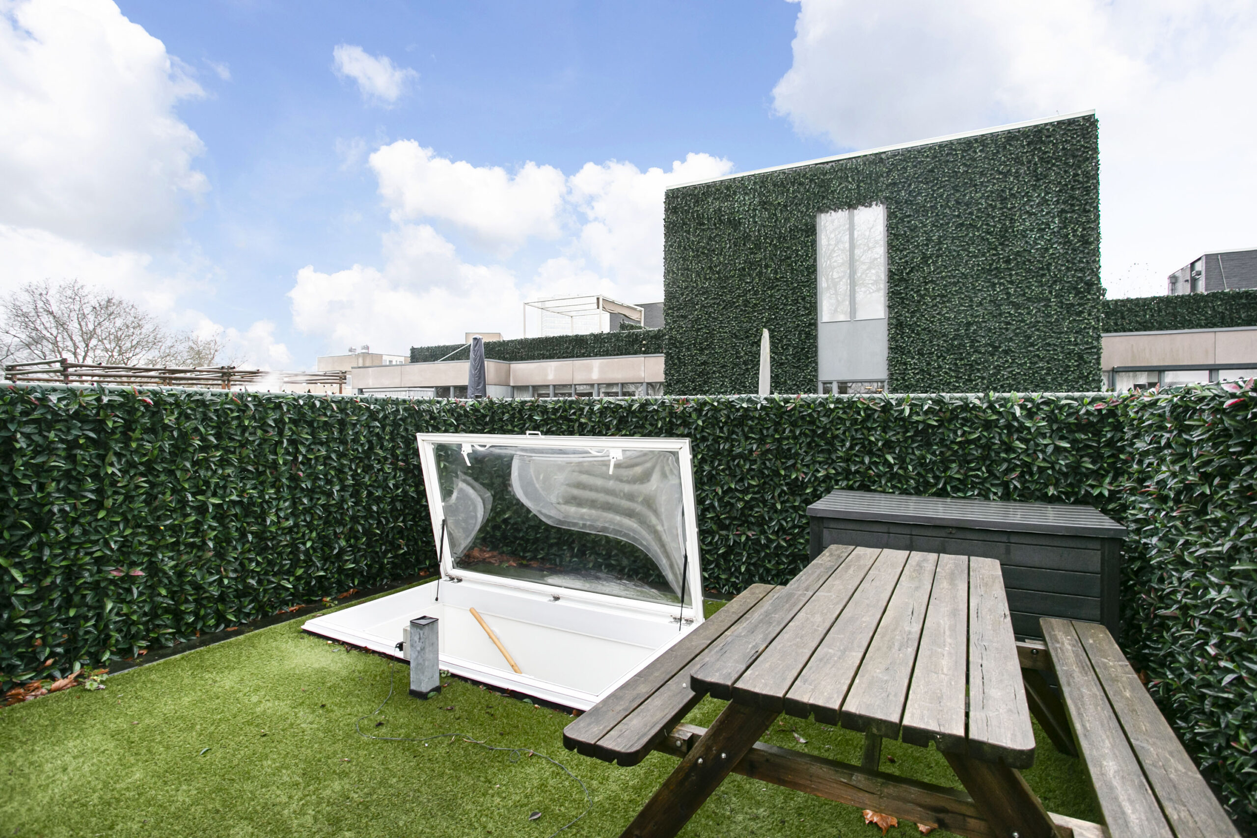 - Woonoppervlakte is 34 m² en het dakterras is 32 m²;