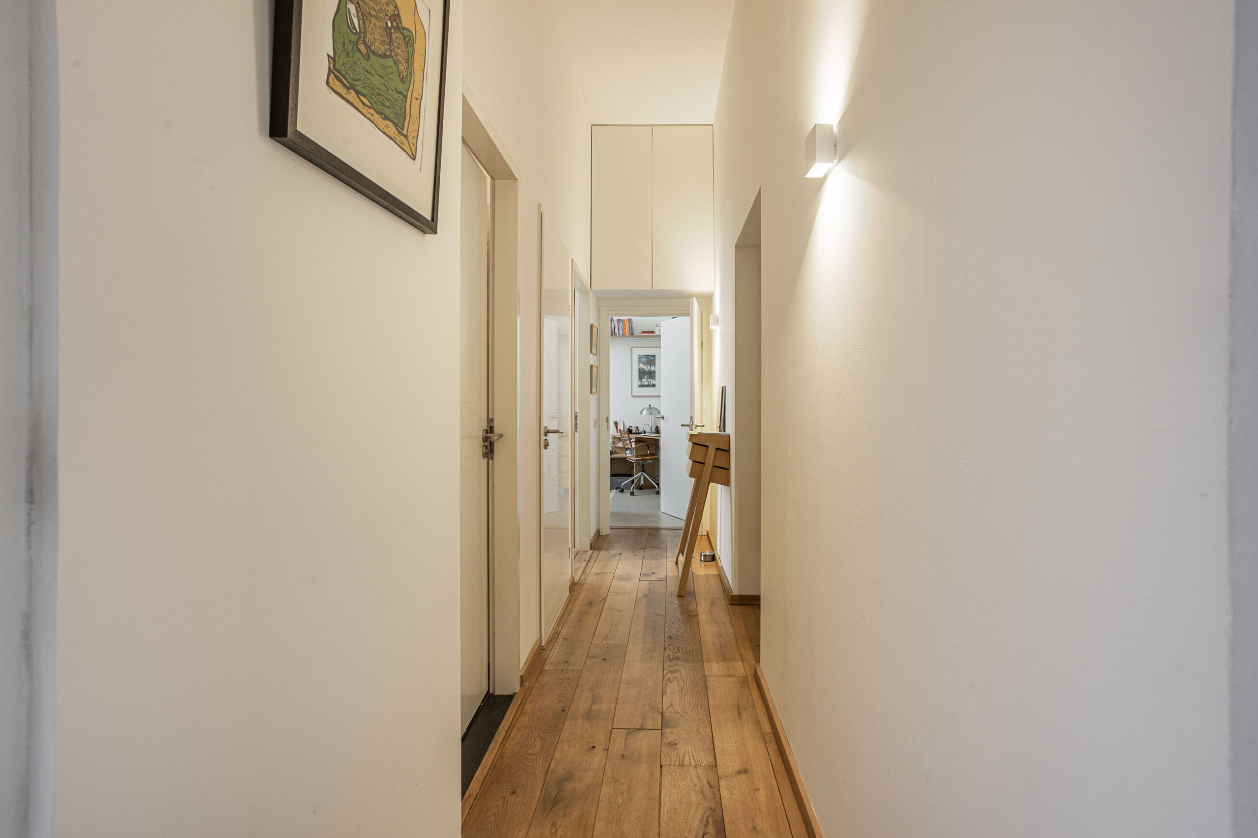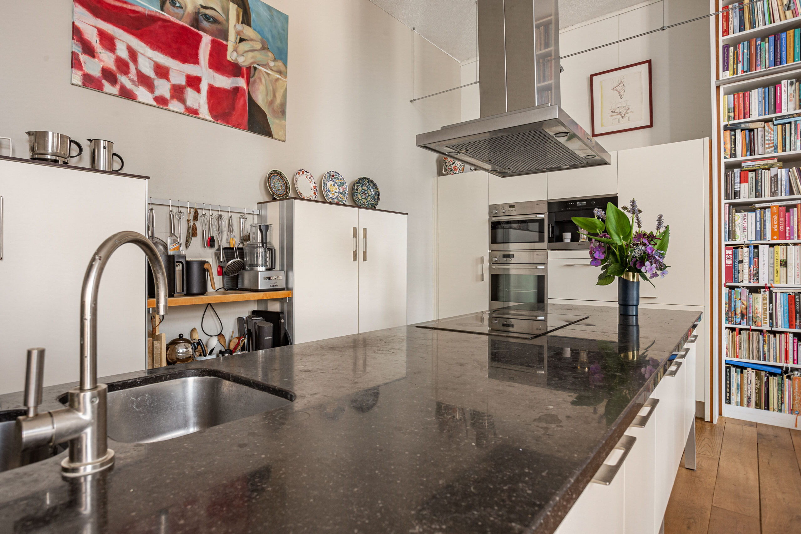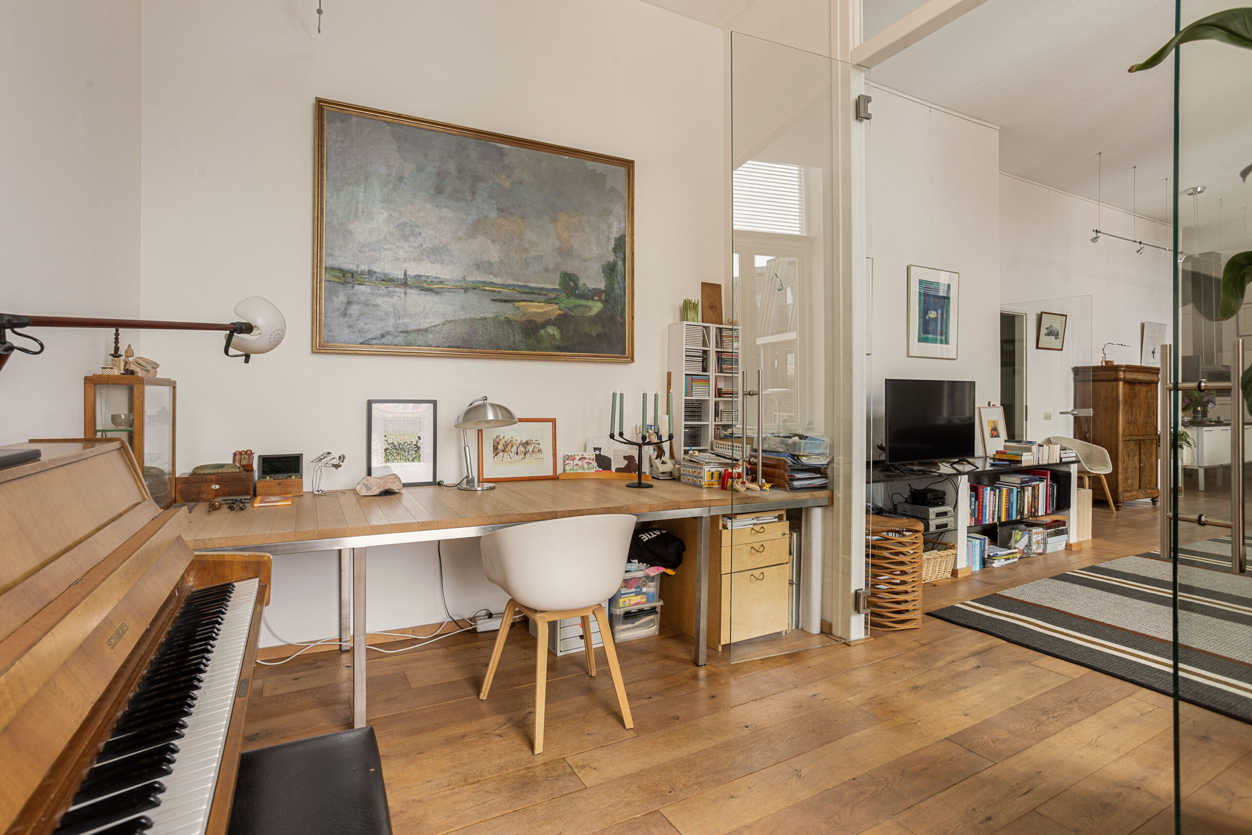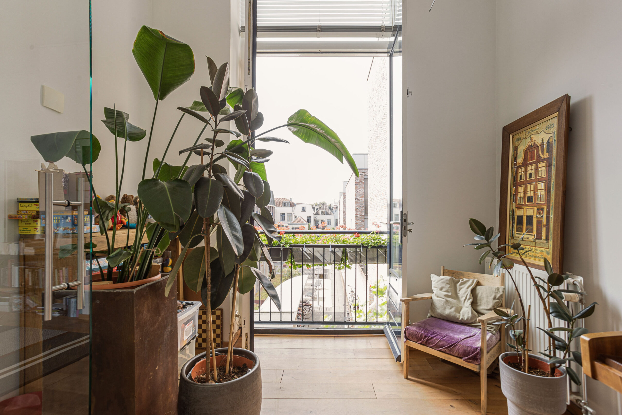 Door de hoge plafonds is deze woning niet alleen zeer licht, maar voelt het nog ruimer aan dan de 166 m2. De woonkamer beschikt over twee Franse balkons en heeft een mooi uitzicht.