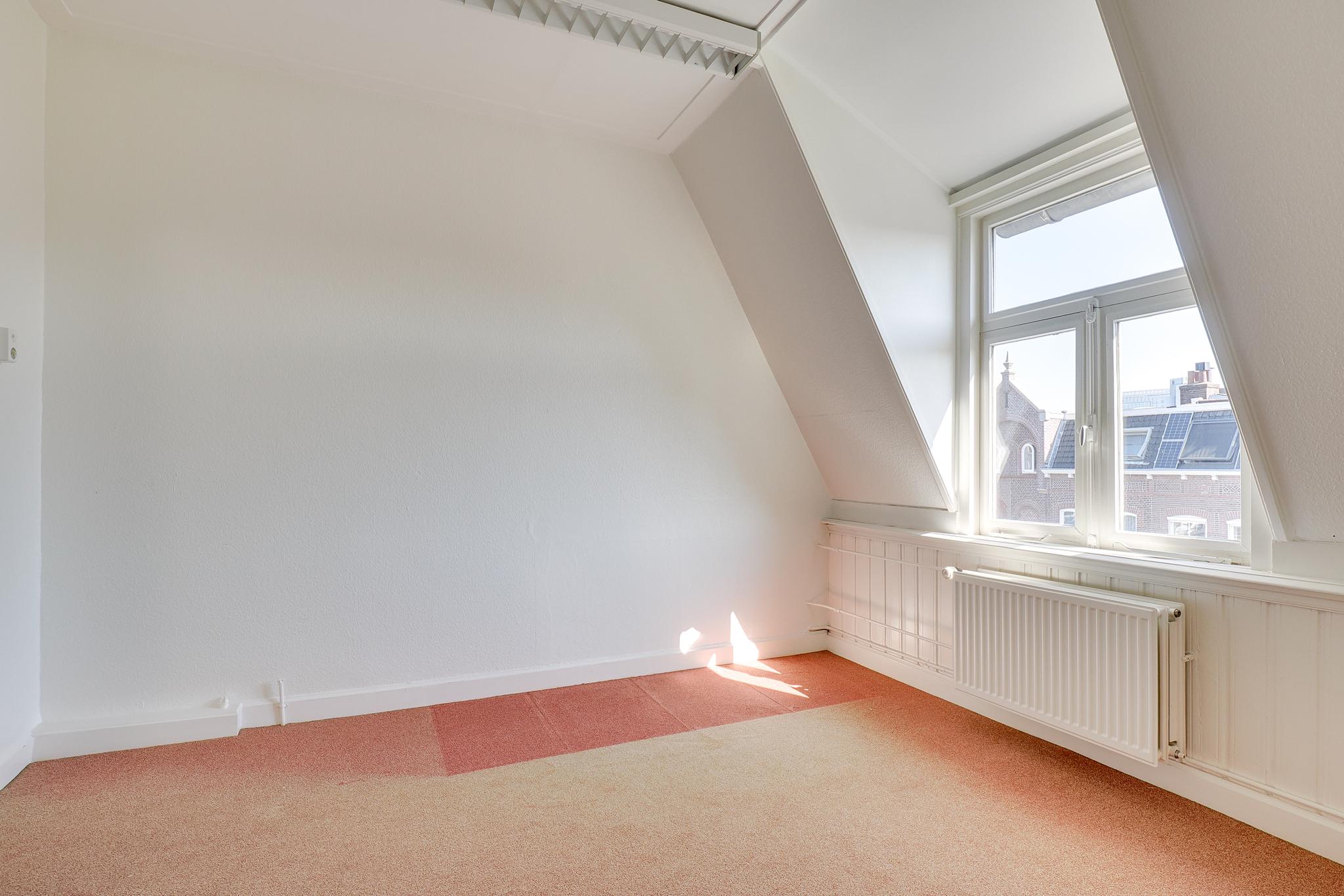 Overloop met vaste kast, toilet, 4 kamers, waarvan 1 met deur naar balkon aan de voorzijde. Vanuit de 2 achterkamers is er toegang tot een dakterras. 1 van de kamers is perfect in te delen als badkamer, daarnaast zijn er nog 3 grote slaapkamers op deze verdieping.