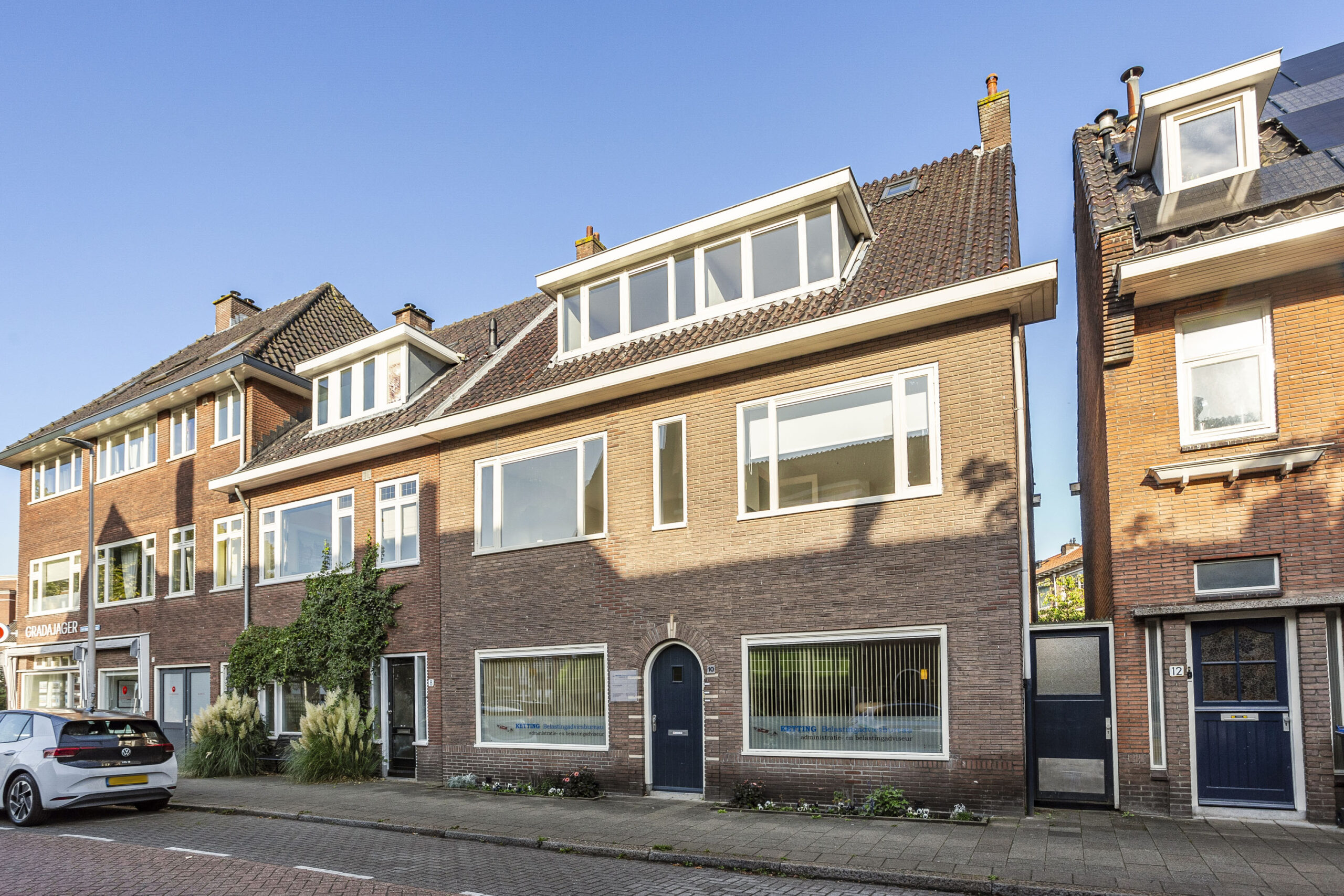 Deze woning is in 1938 gebouwd als Huisartsenwoning wat de uitzonderlijke breedte van dit object van ca. 8.50 mtr verklaart. Het woonoppervlak is maar liefste 239 m2 (conform Nen-2580) Deze lichte woning heeft zowel een voordeur aan de straat in het midden alsook een zij-ingang voor de patiënten vroeger. Dit object leent zich dan ook voor verschillende doeleinden zoals werken/praktijk aan huis of een zeer royale eengezinswoning, maar het geheel kan ook getransformeerd worden tot 2 of 3 appartementen.